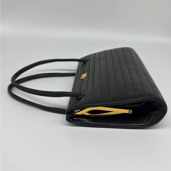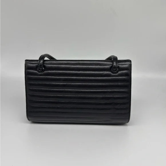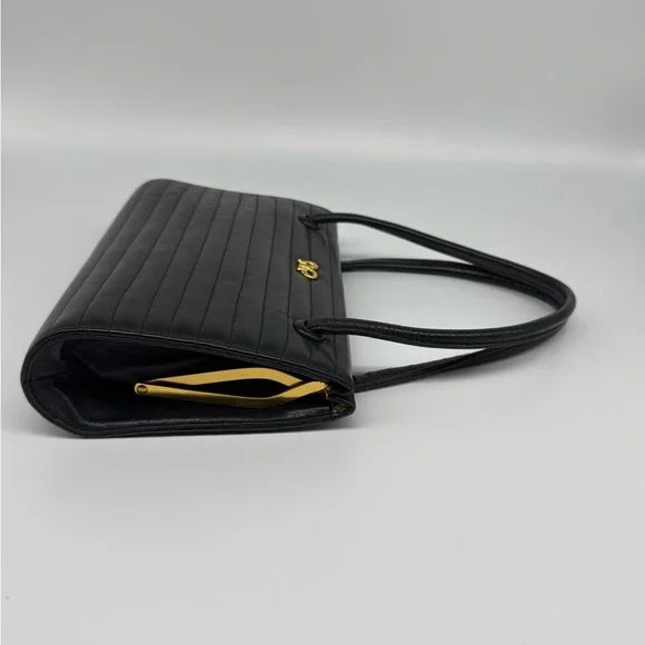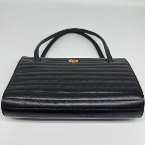 Add classic sophistication to your wardrobe with this authentic Bienen-Davis handbag, crafted in luxurious quilted black leather with structured top handles.