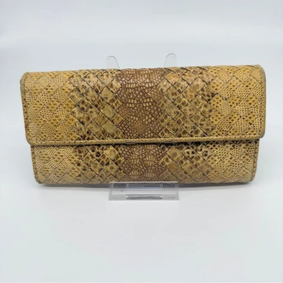 Gorgeous Bottega Veneta woven snakeskin leather wallet.