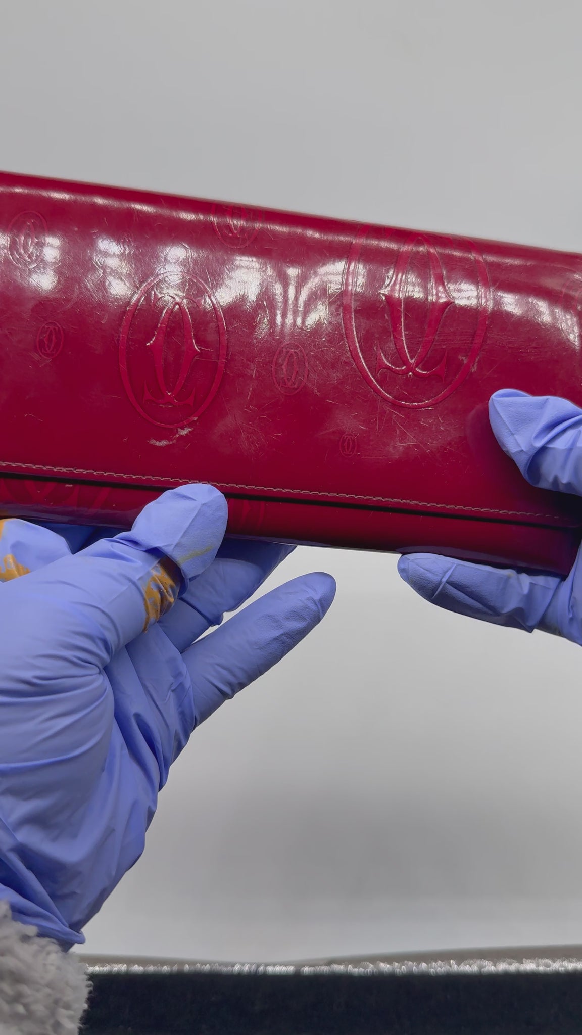 Wallet is a DEEP RED. Video is more accurate due to shadowing of enamel leather in pics.