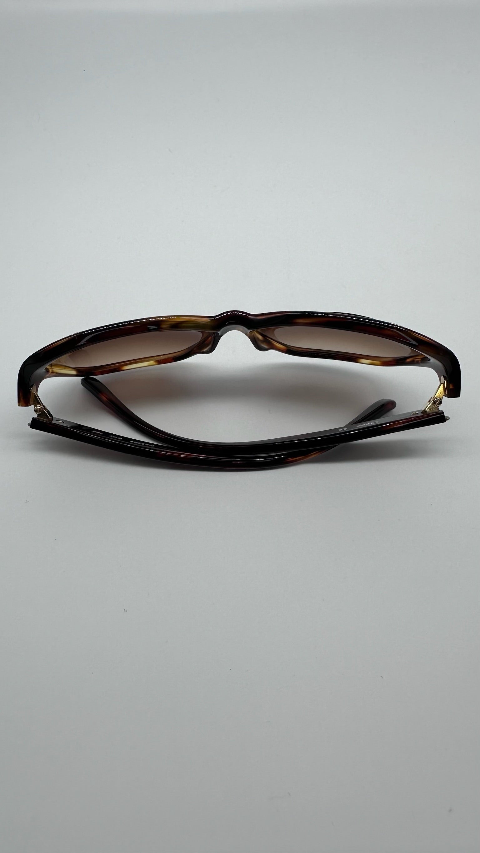Featuring a flattering butterfly shape, gradient brown lenses, and chic metal chain detailing at the temples, these sunnies are a perfect blend of vintage glam and modern sophistication.