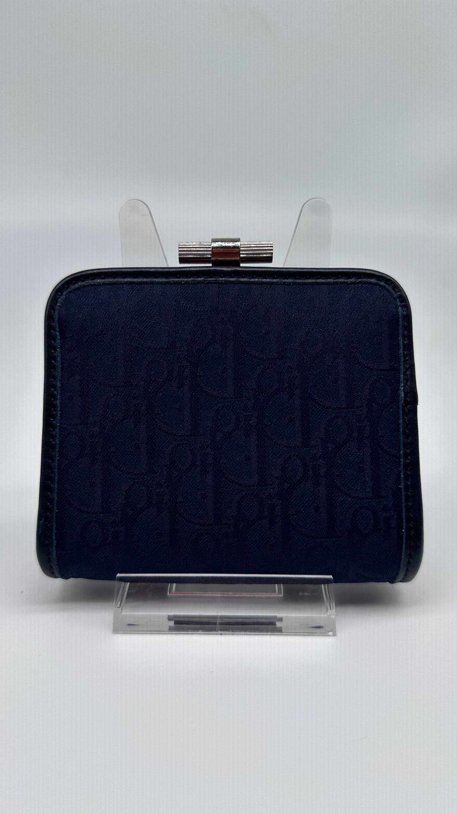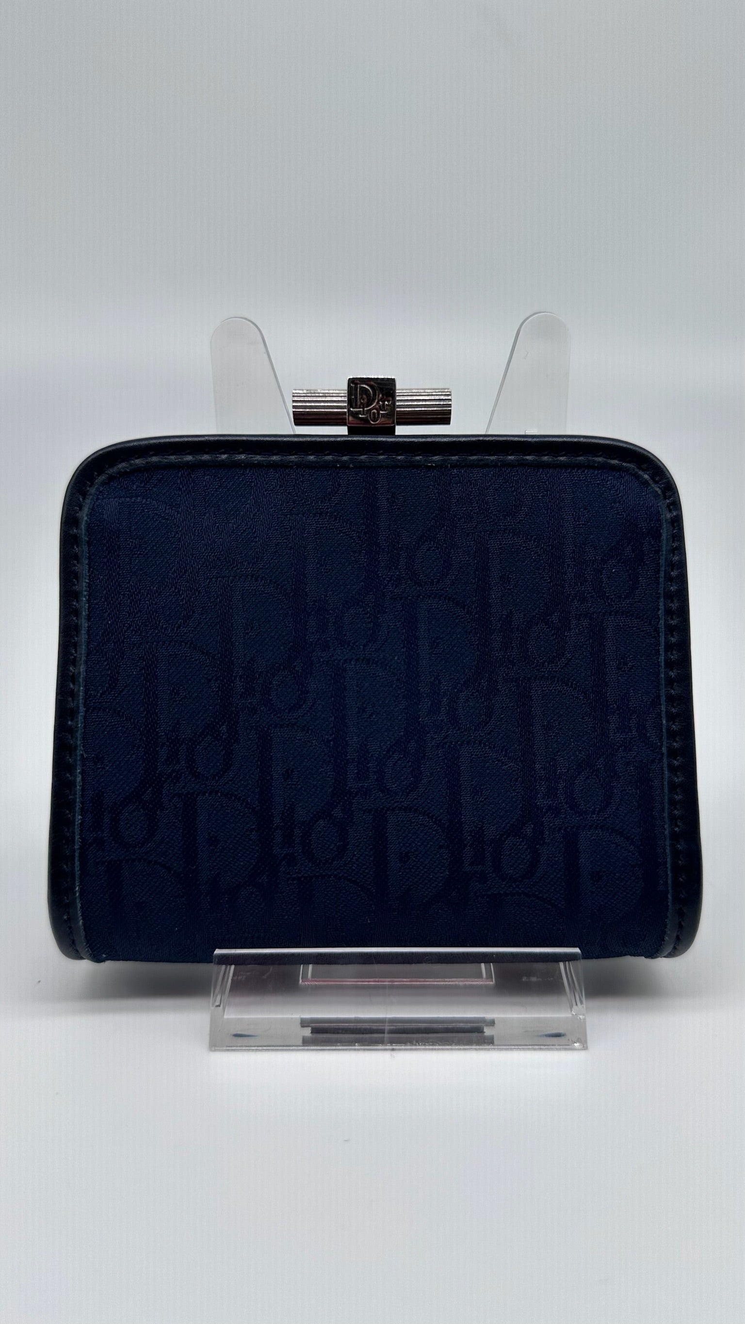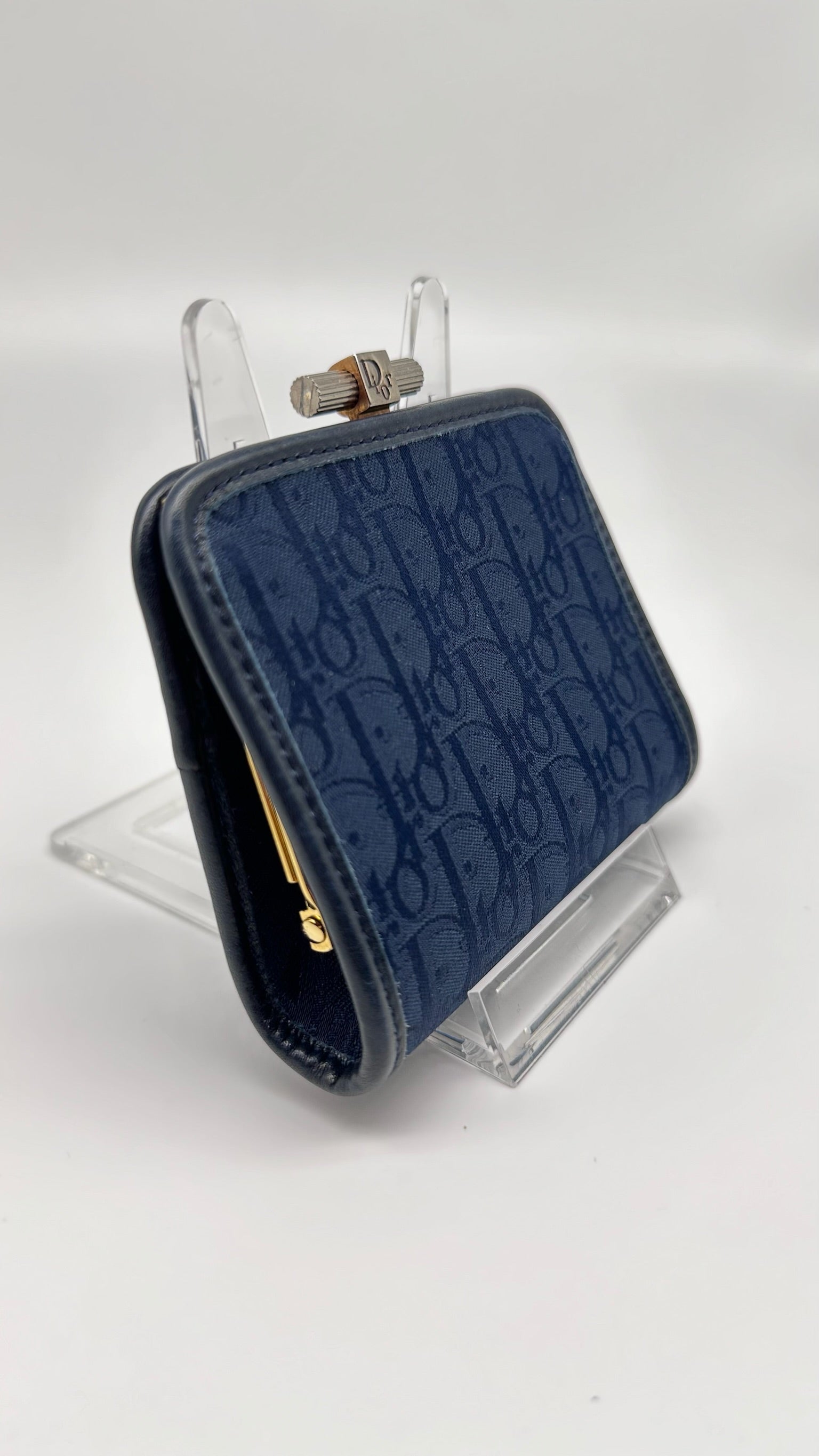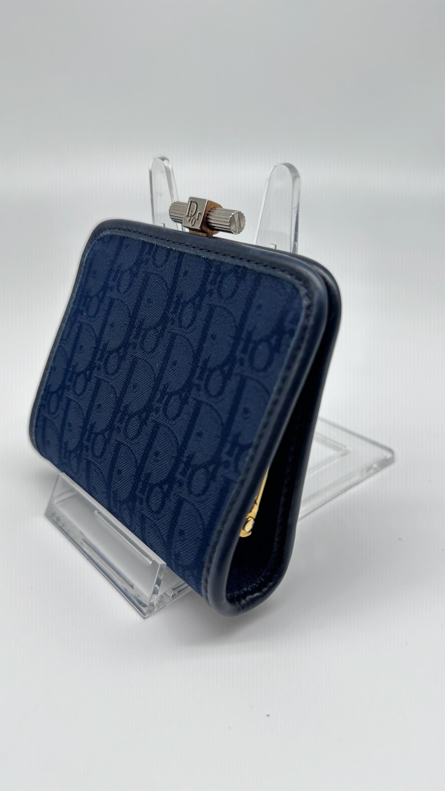 Vintage Christian Dior Oblique Monogram Coin Purse – Navy Canvas Kiss Lock