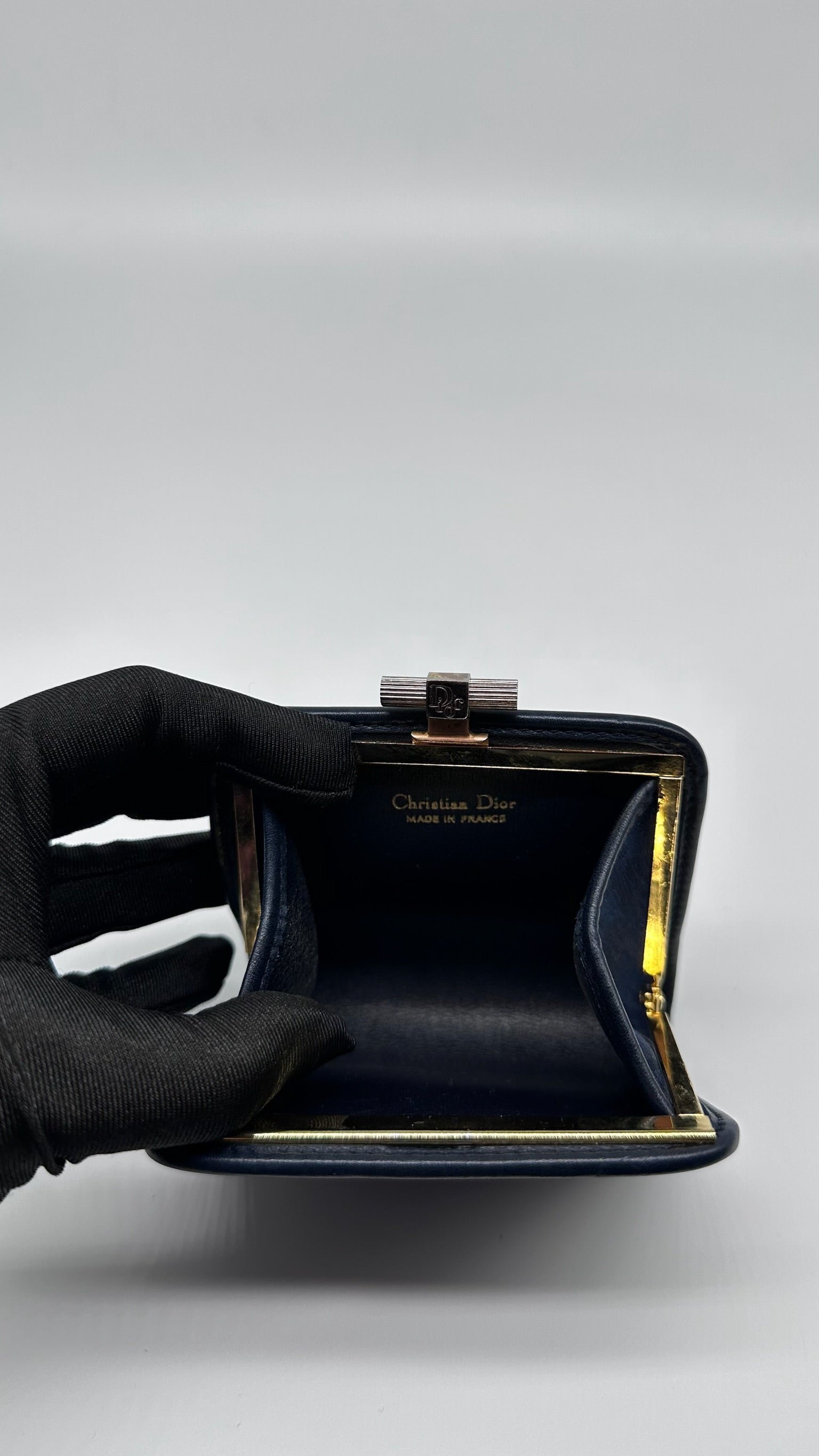 Structured kiss-lock clasp with “Dior” engraving