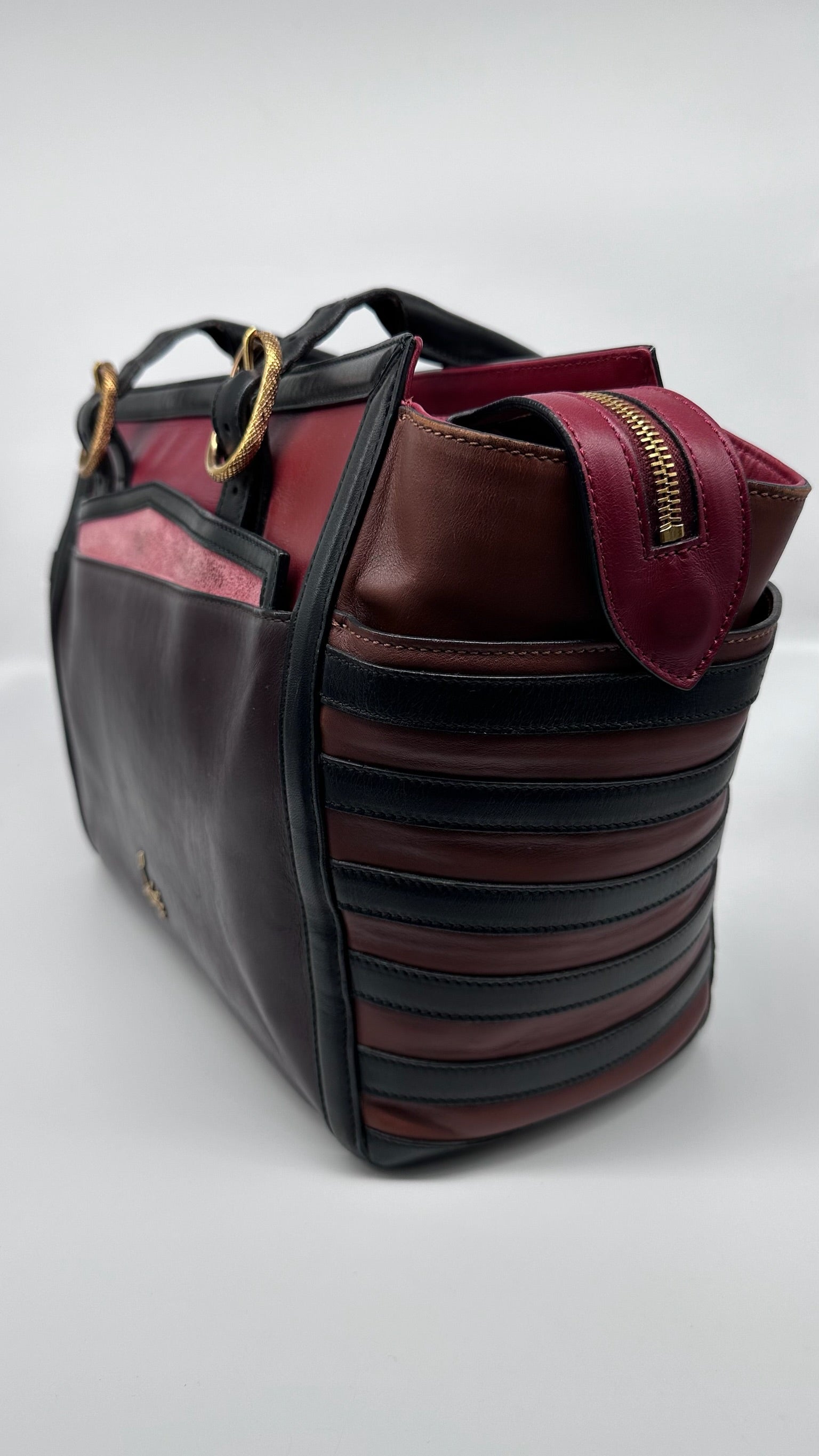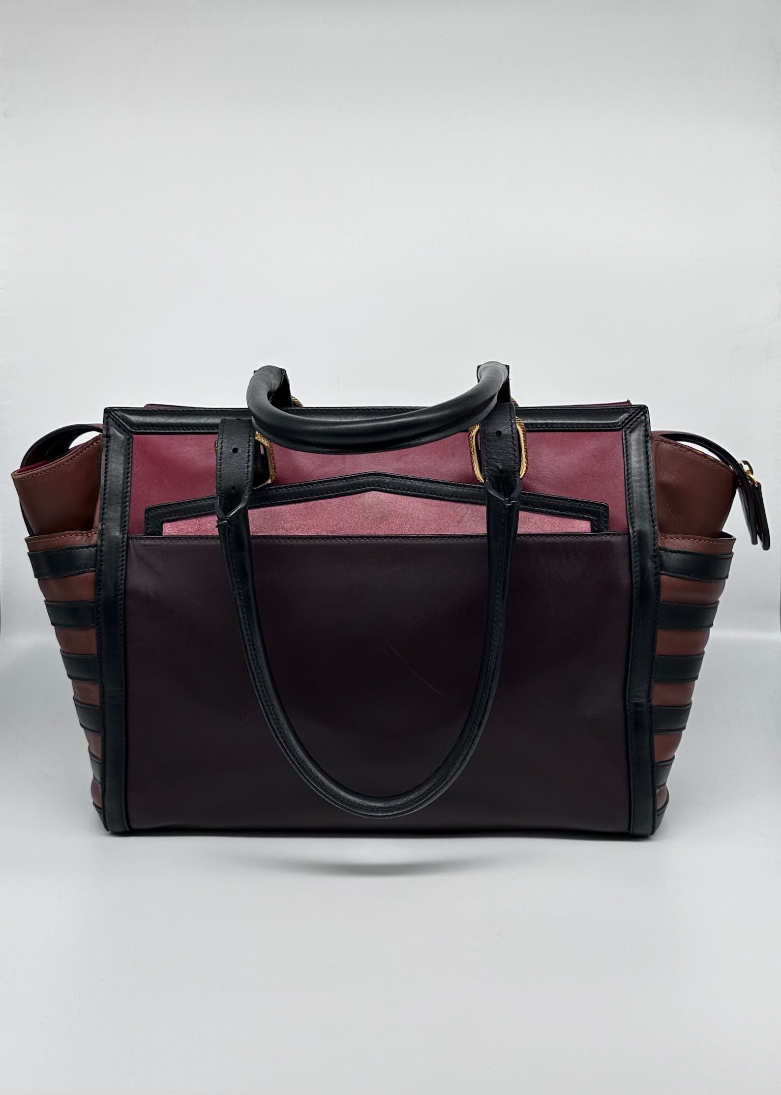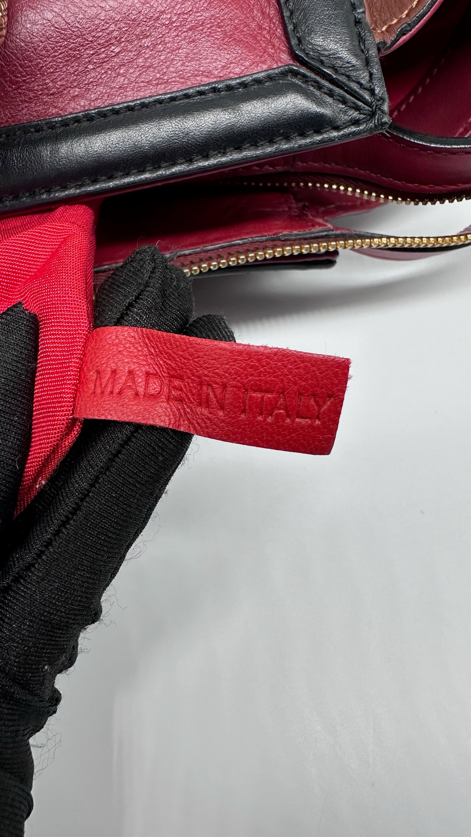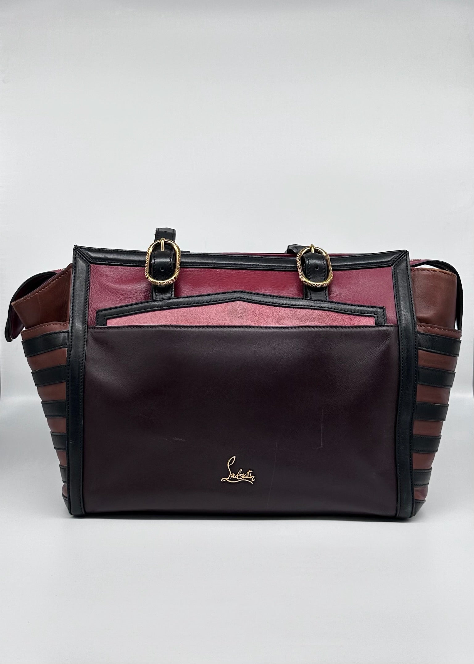 Christian Louboutin Farida Large Leather & Suede Tote – Burgundy/Black/Red