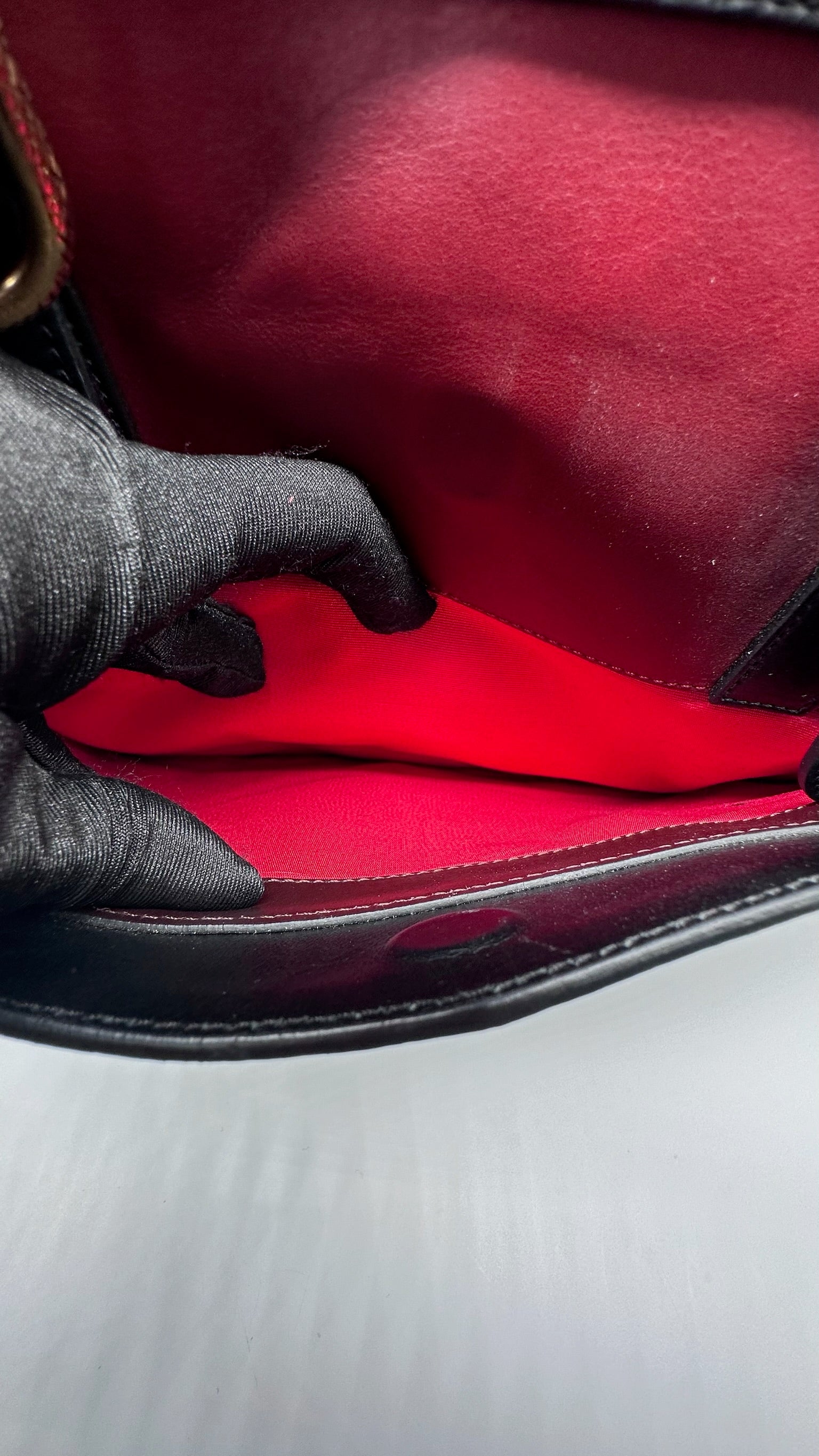 This authentic Christian Louboutin Farida Tote is a striking blend of smooth leather and plush suede, accented with black trim and finished with gold-tone hardware. A structured silhouette offers both elegance and function, while the signature red interior lining brings the unmistakable Louboutin touch.