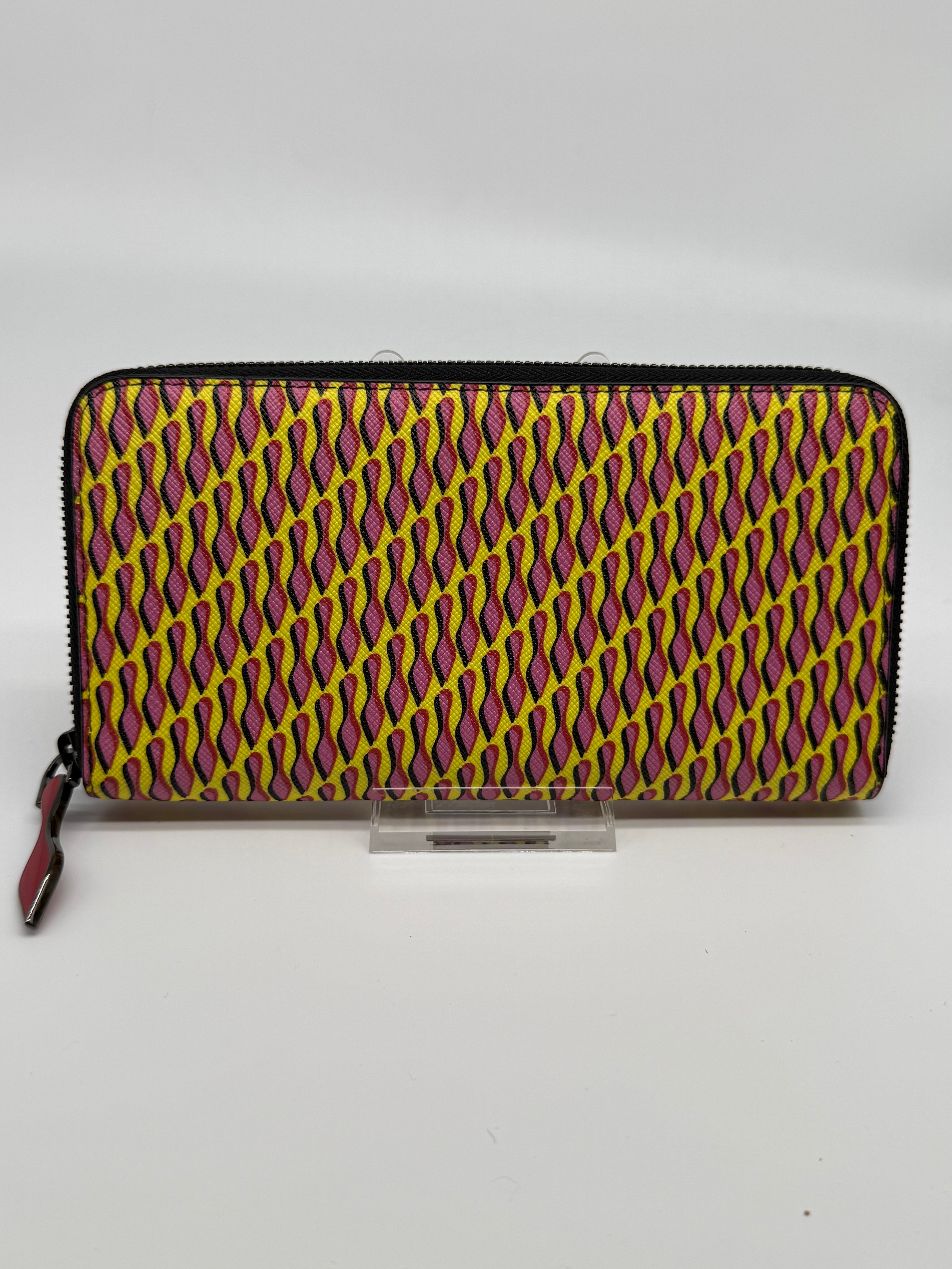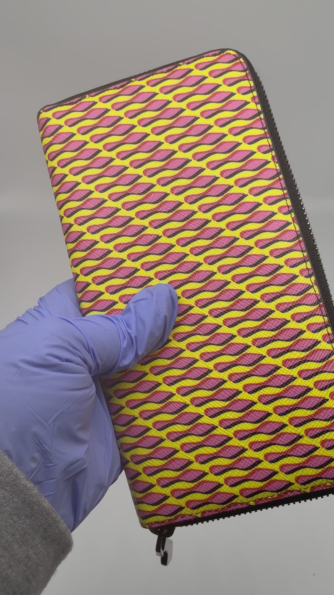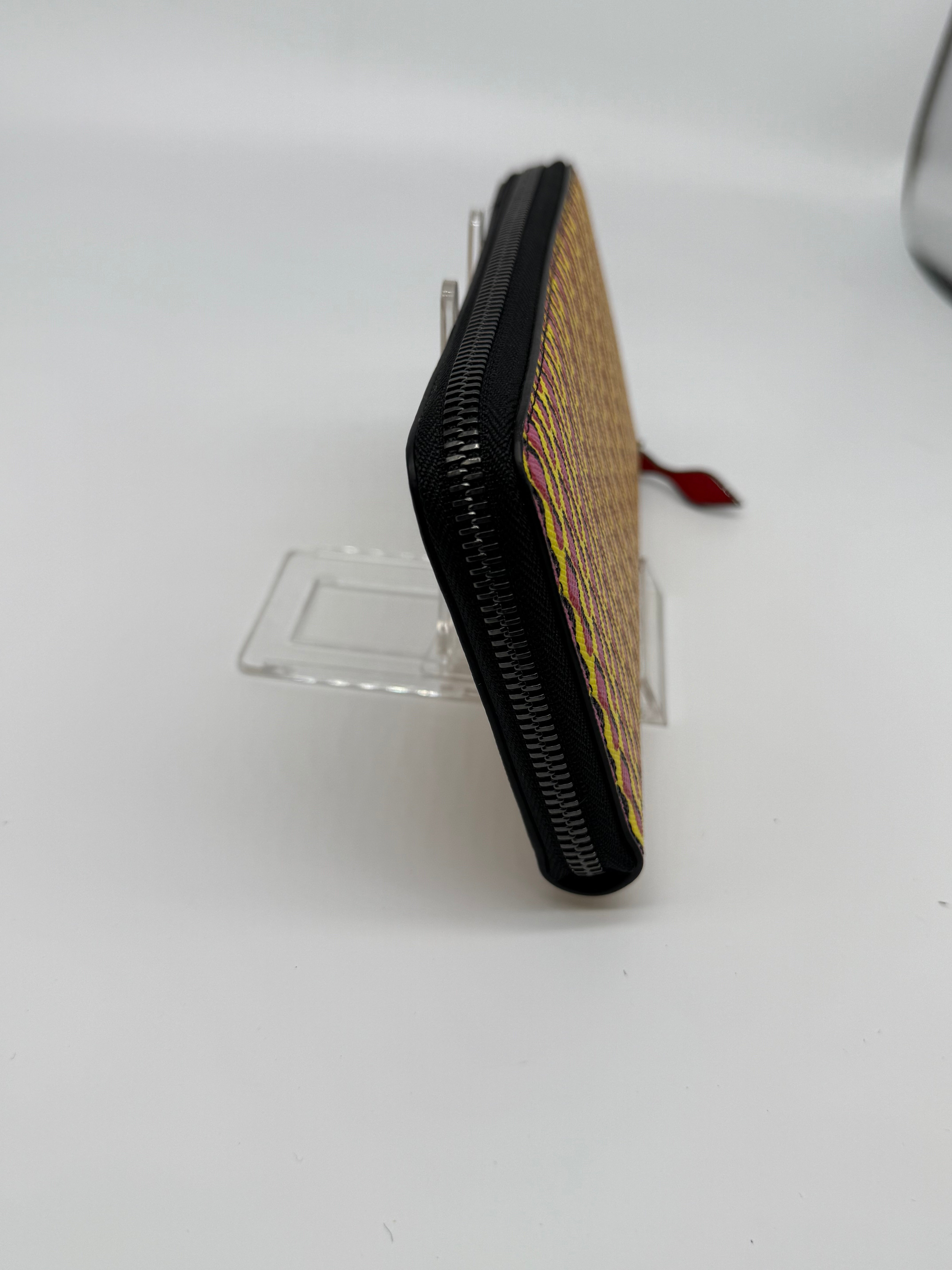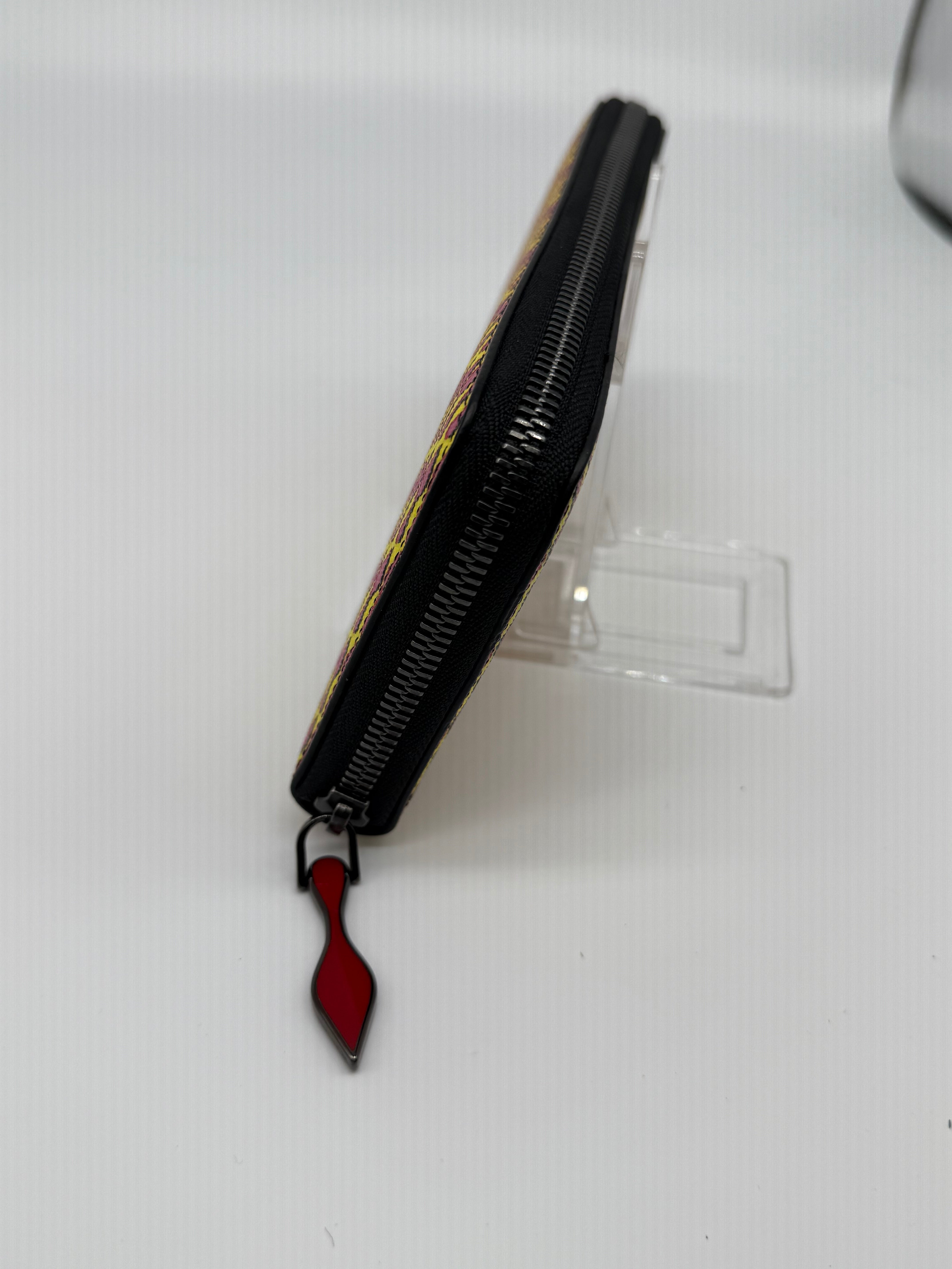 Exterior featuring iconic Louboutin symbol canvas exterior and zipper pull. Colors are bright and vibrant! Stunning red interior featuring 12 card slots, 2 bill slots, 1 zippered compartment (extremely clean), and 2 oversized compartments. The condition of this wallet is very rare!