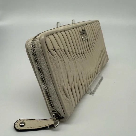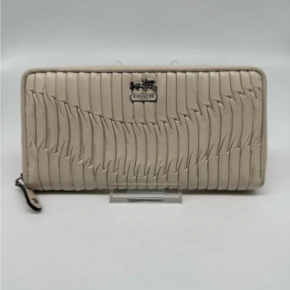 Beautiful cream Coach Madison Gathered Leather Zip Wallet.