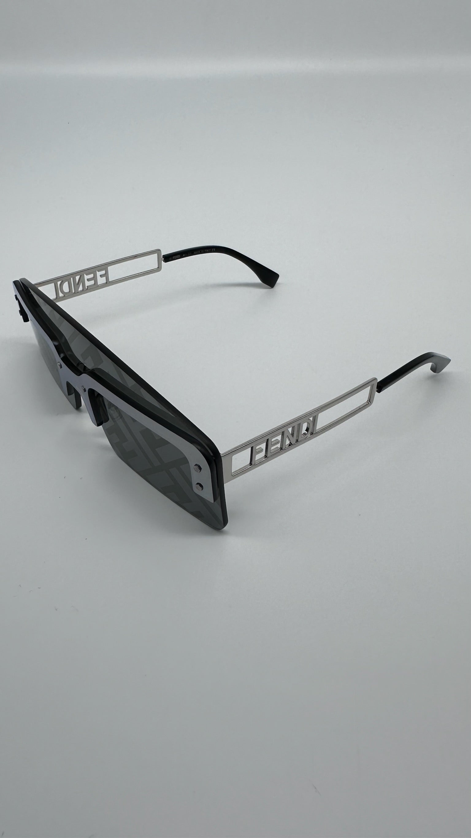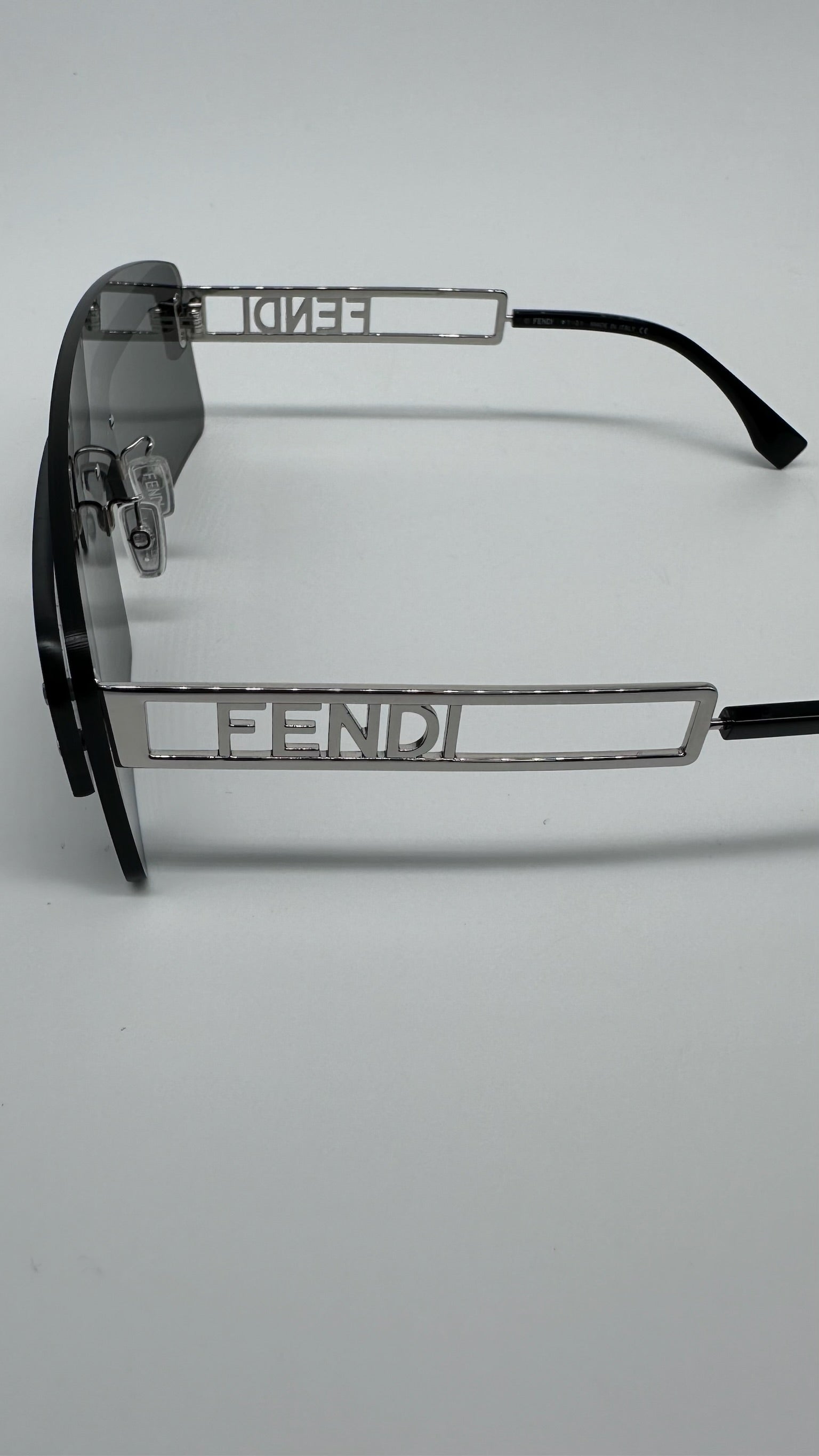 The openwork metal temples spell out “FENDI” in sleek shiny palladium.