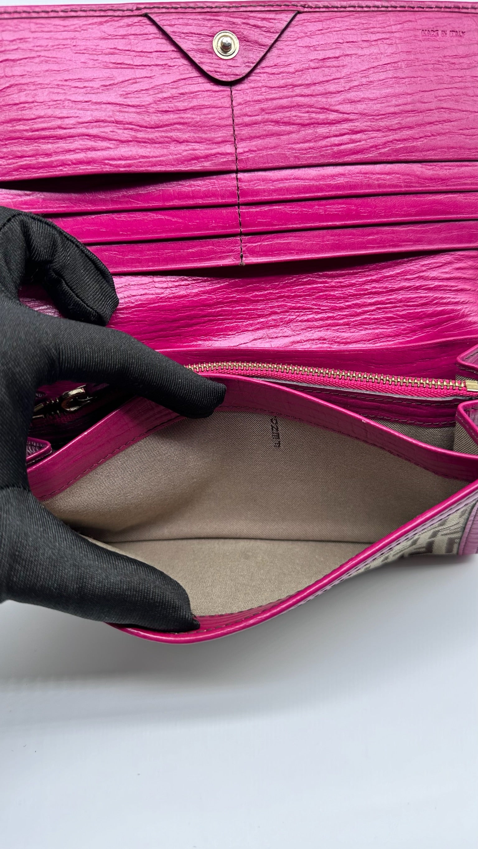 Fendi Zucca Canvas & Leather Continental Wallet - RARE Hot Pink/Monogram