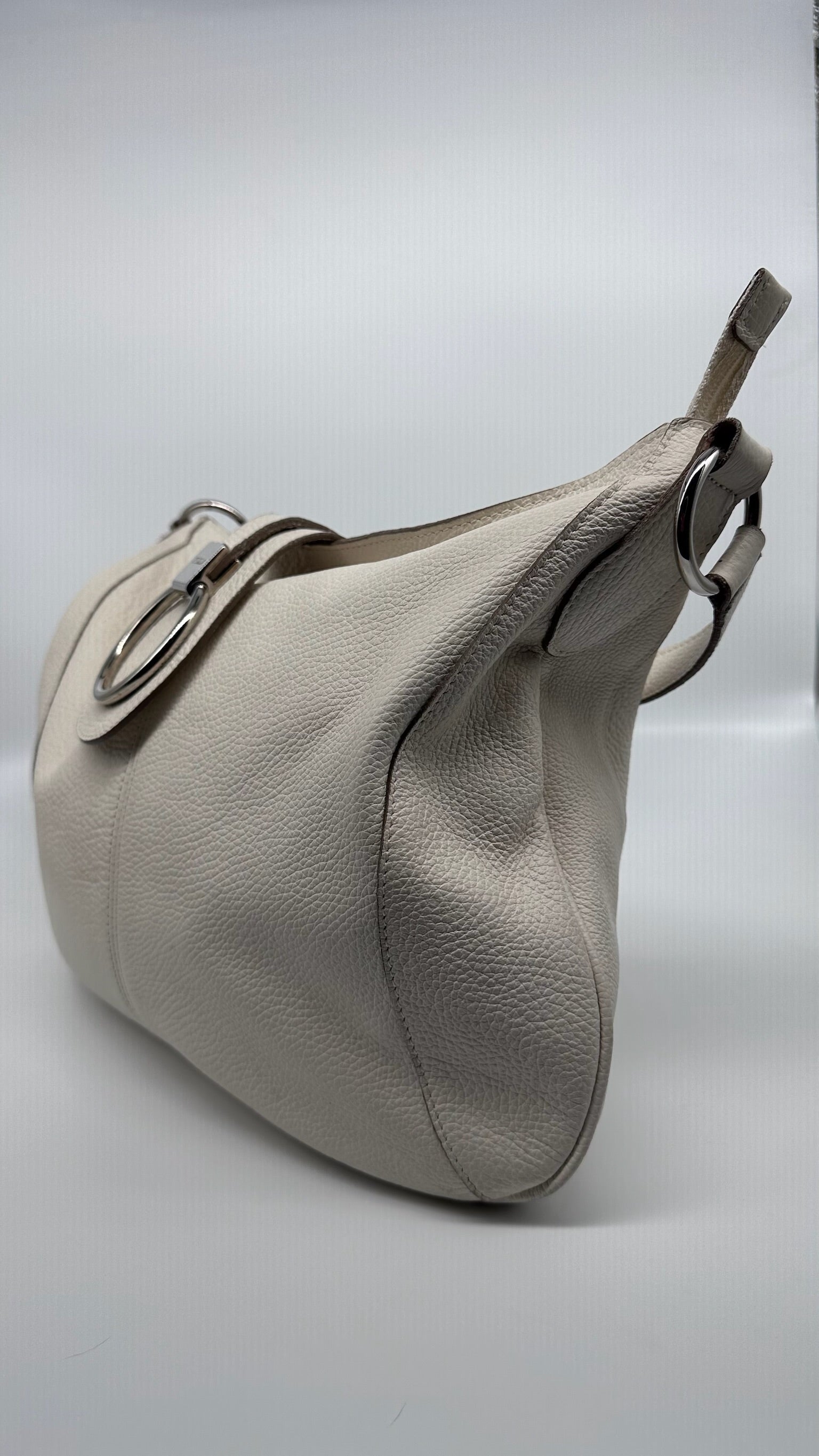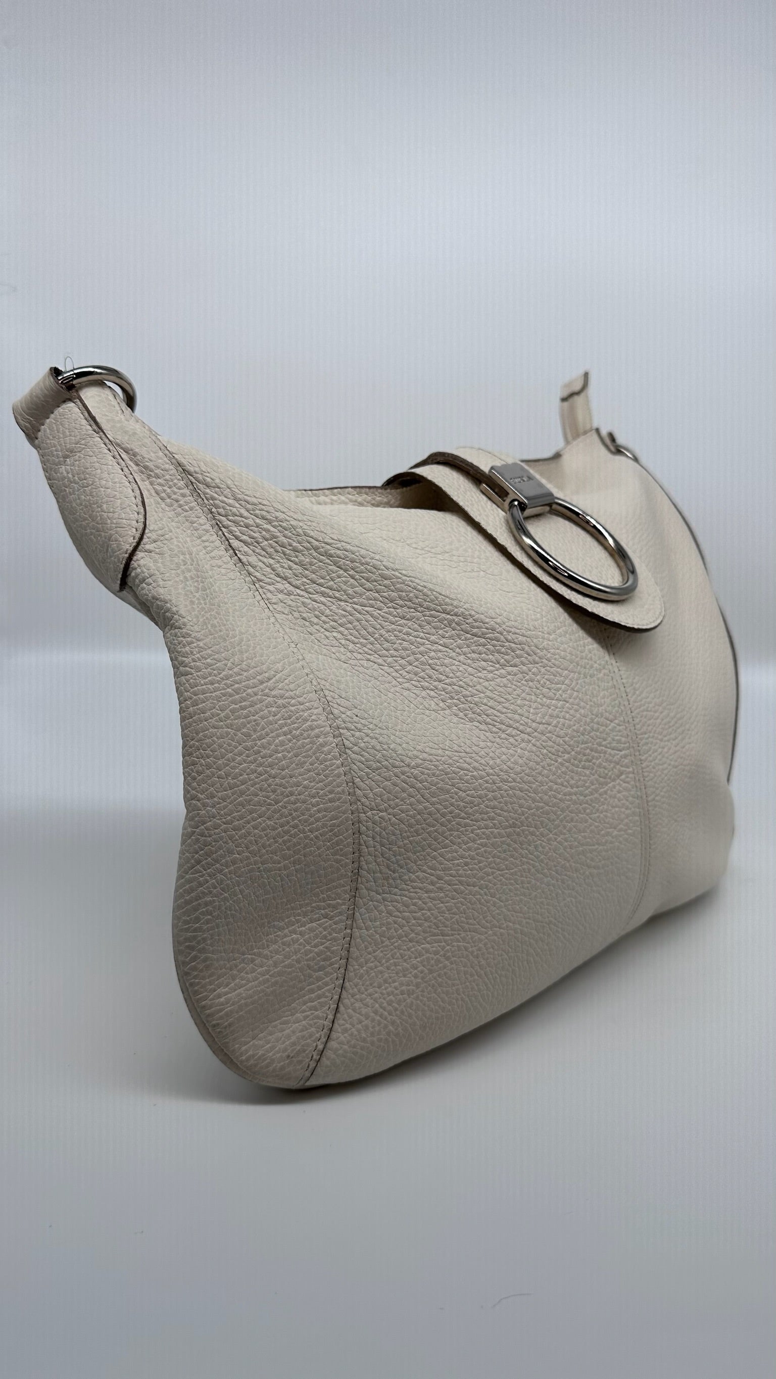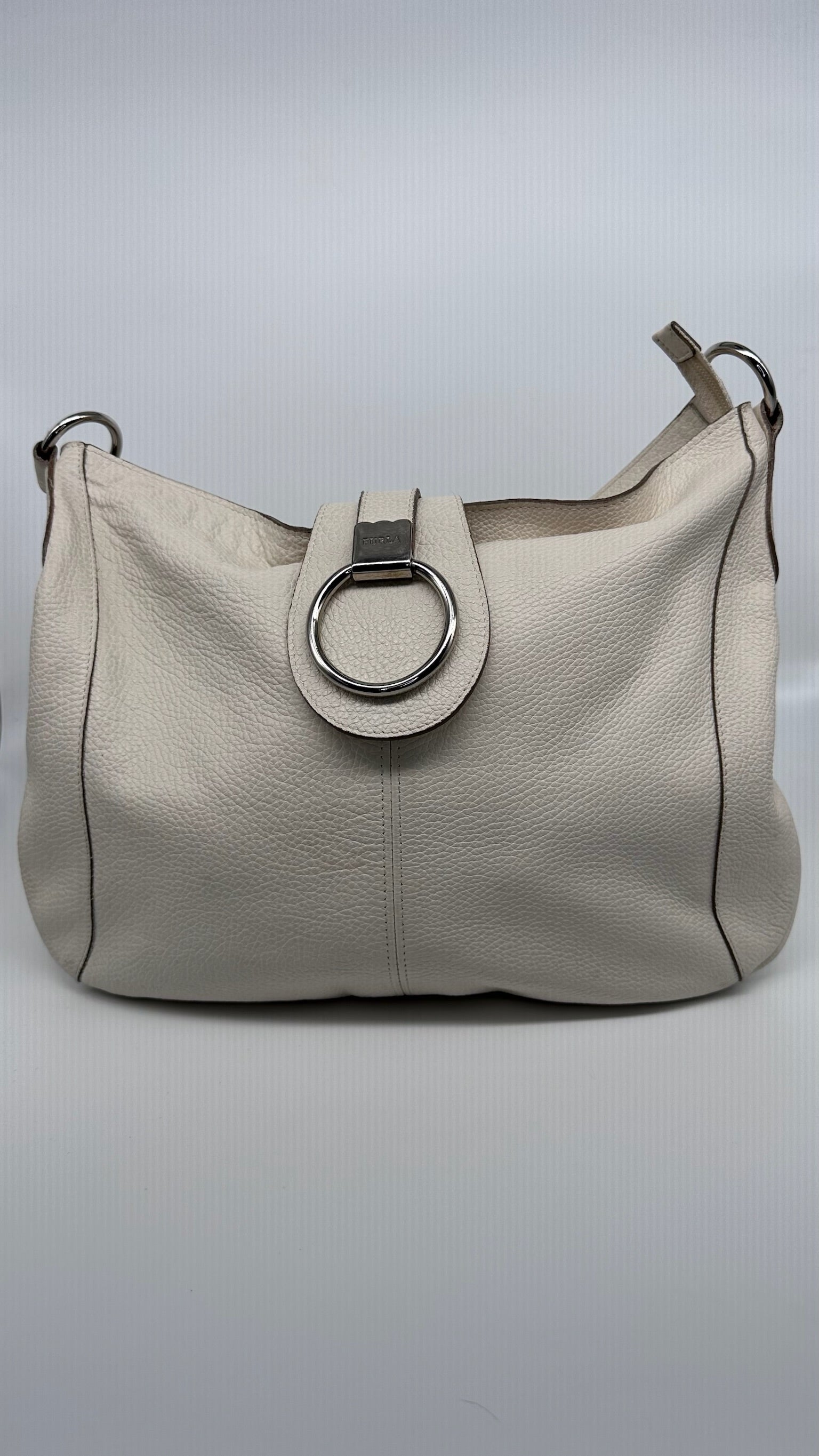 Furla Cream Pebbled Leather Ring Hobo Bag