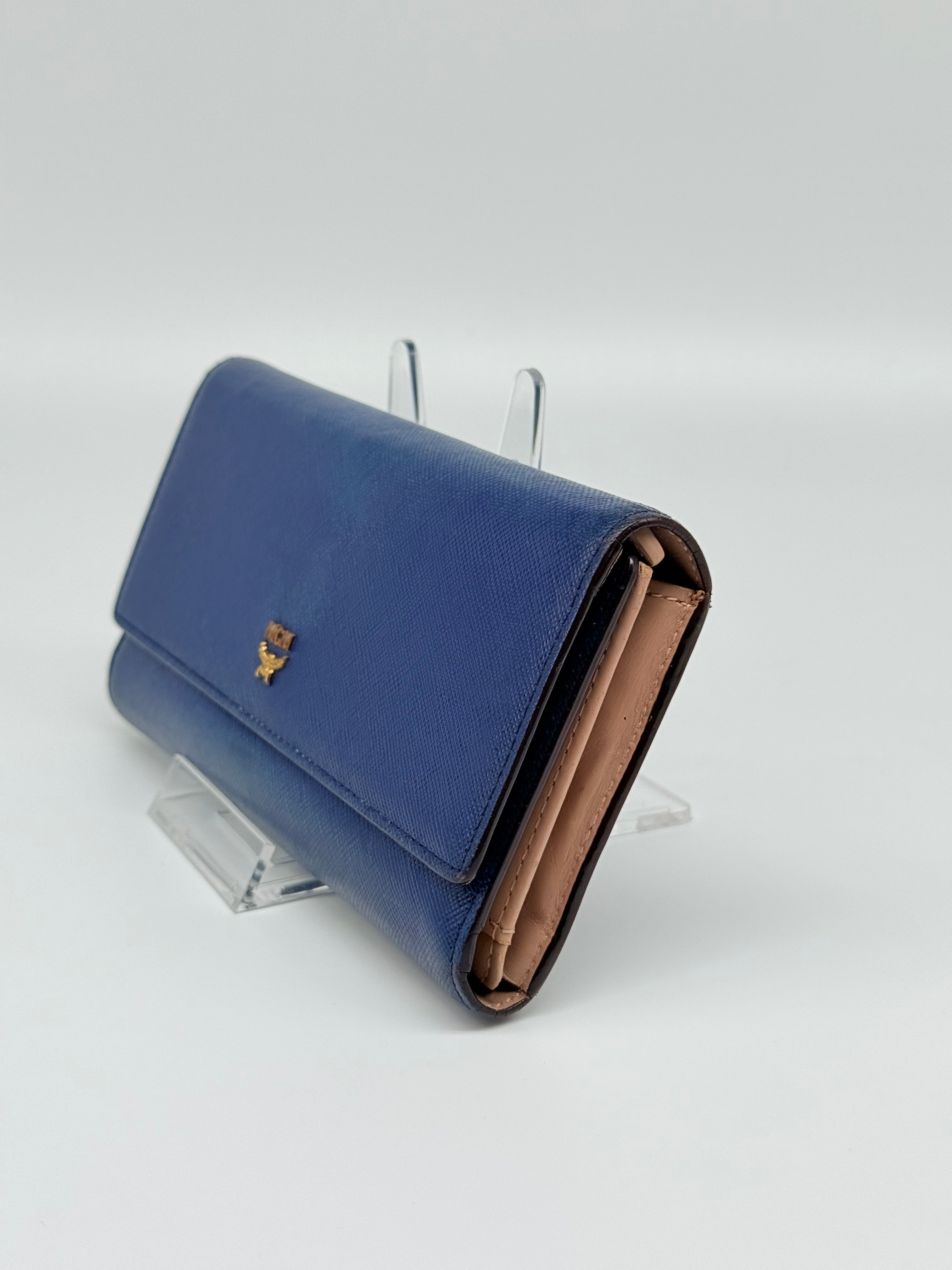 Beautiful royal blue MCM trifold wallet