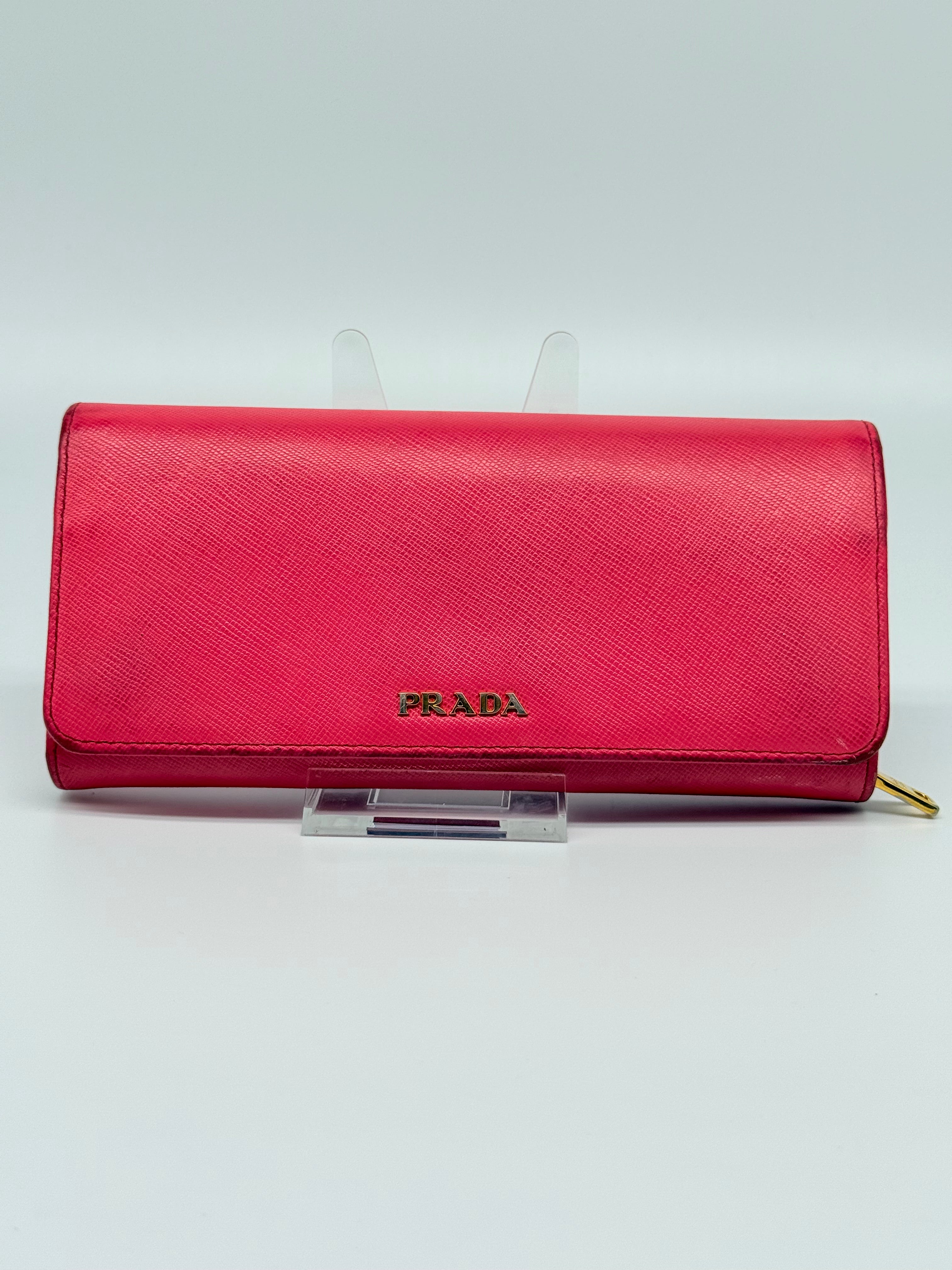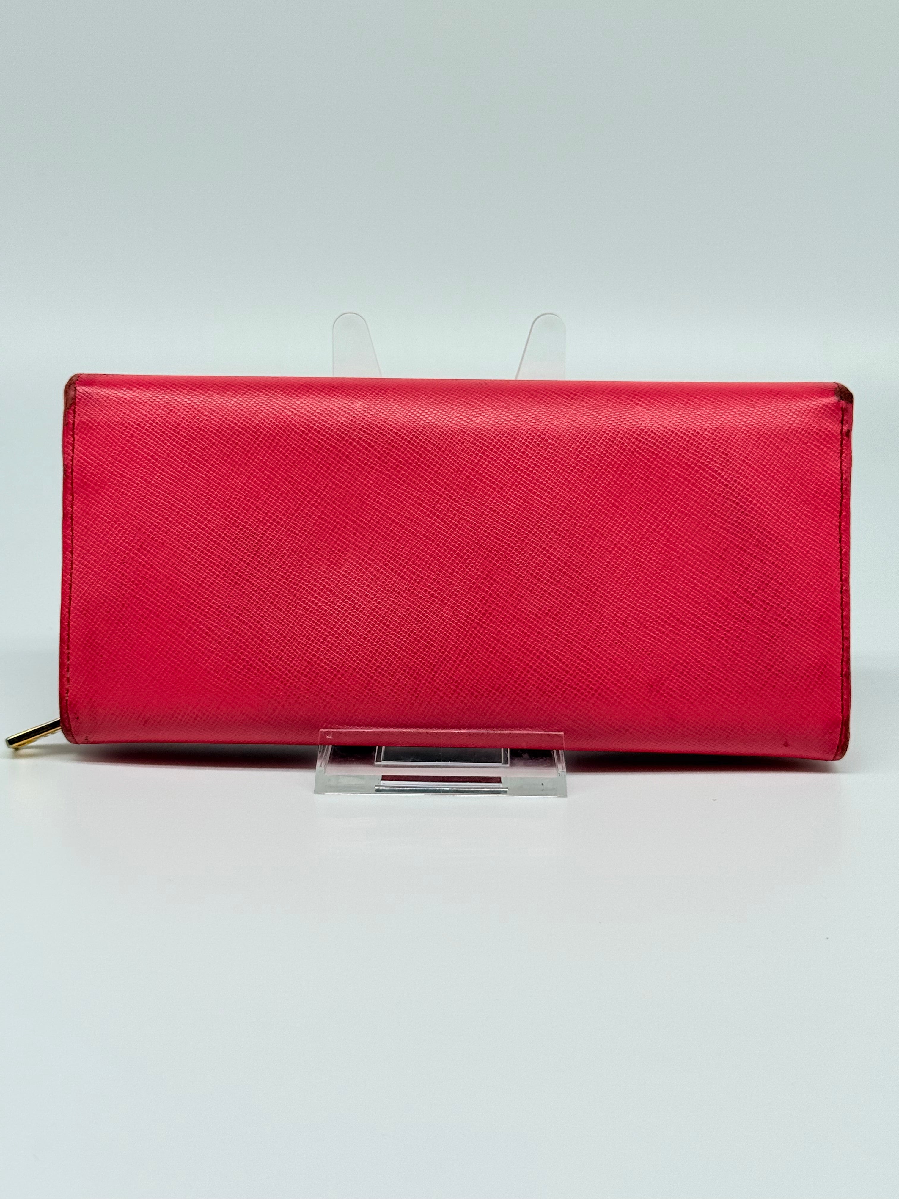 Prada Coral Saffiano Two Tone Long Wallet