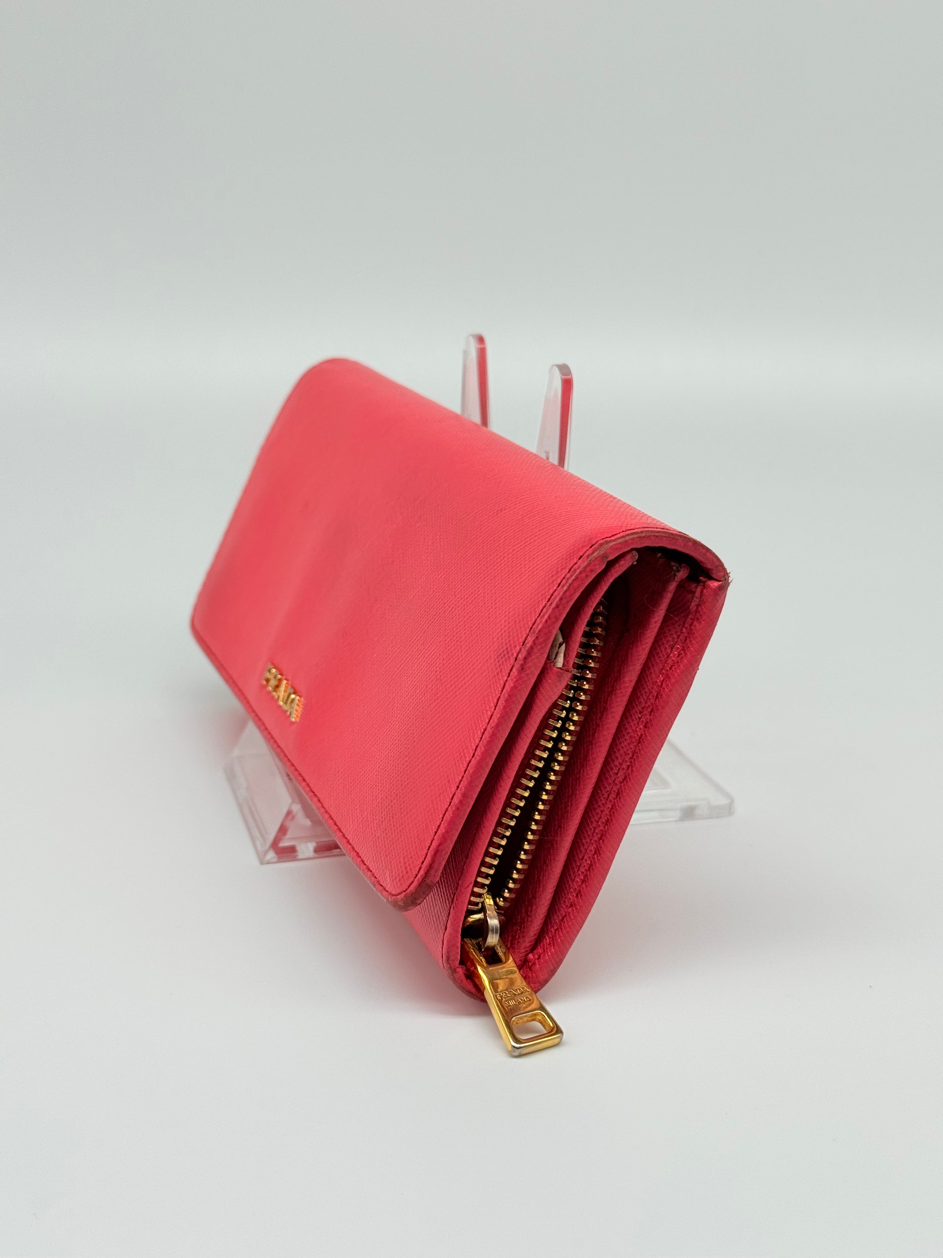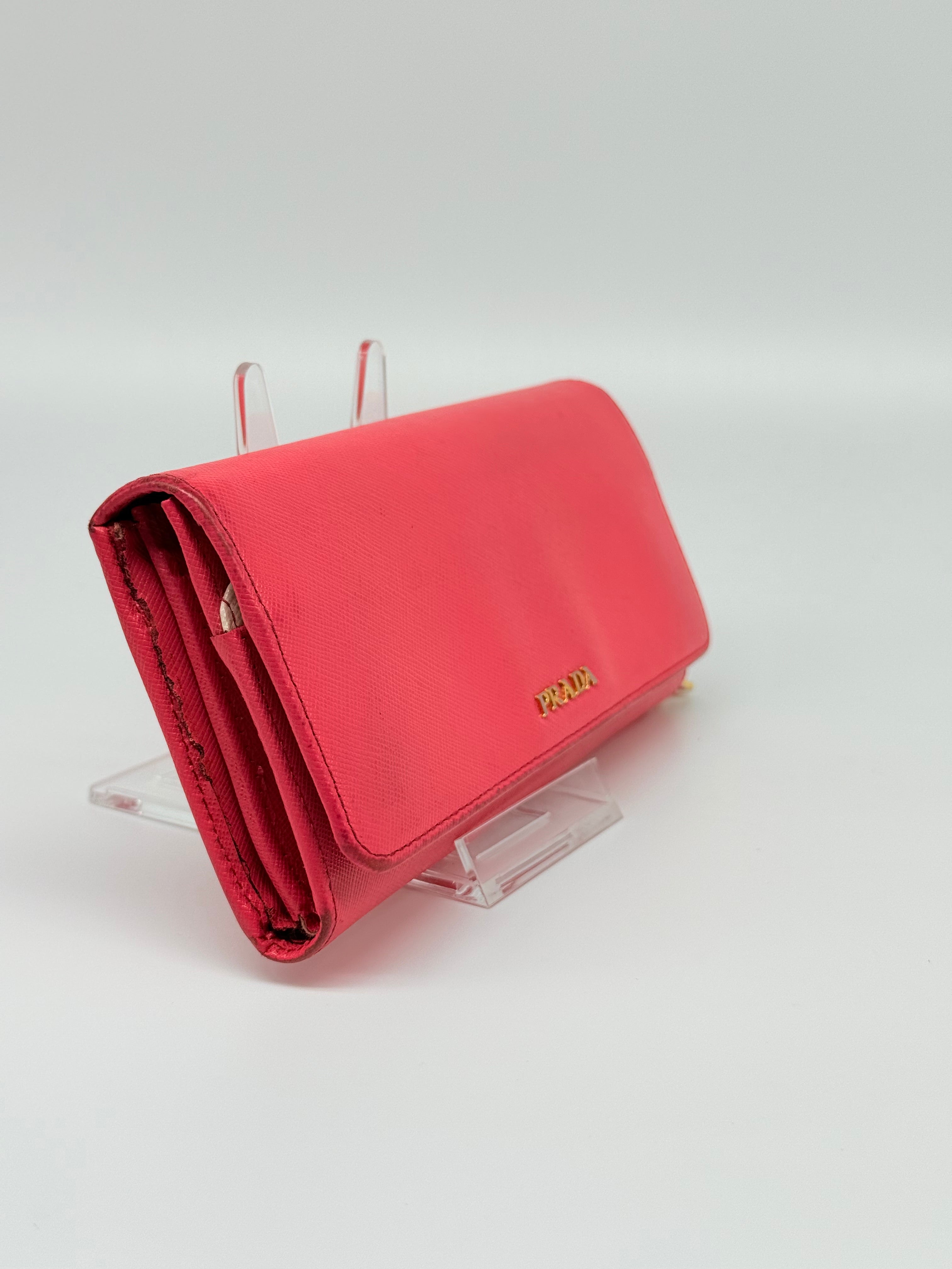 Beautiful Coral Prada Saffiano Two Tone Wallet.