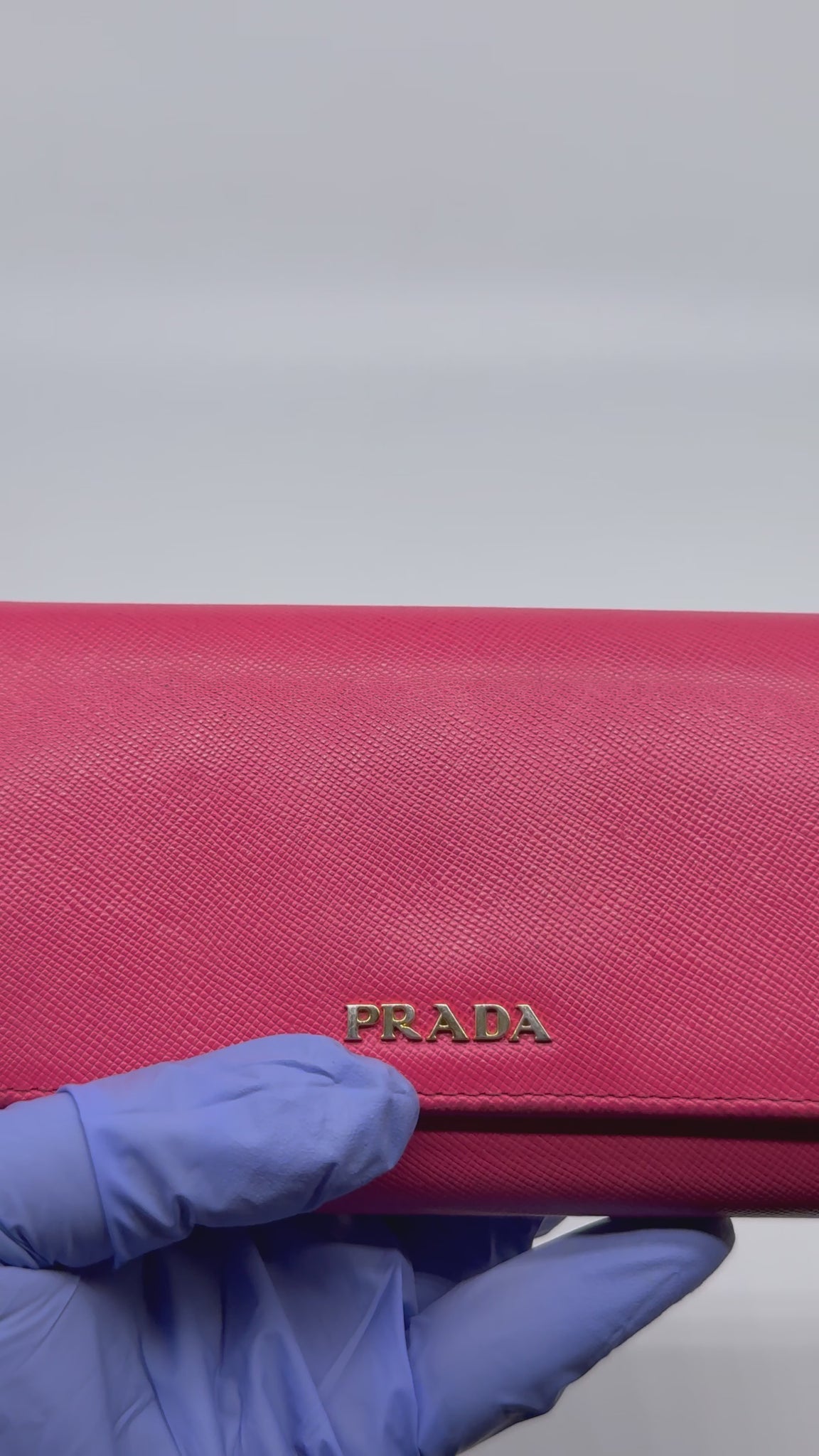 Featuring iconic Prada script gold hardware. Interior features 10 card slots, 4 bill slots, 1 large compartment, zippered compartment with 4 separate pockets, and Saffiano leather interior/exterior. Extremely clean interior!