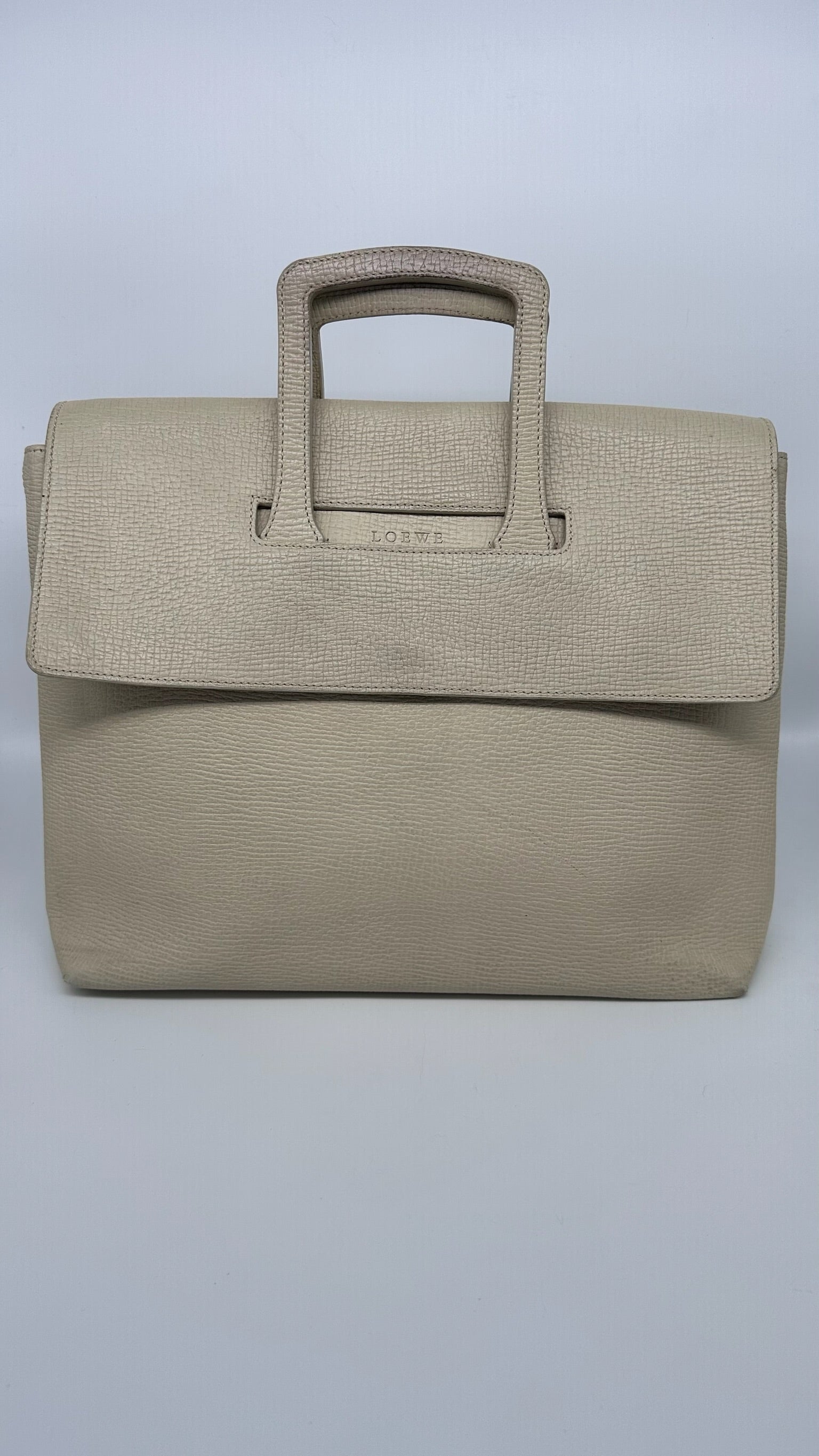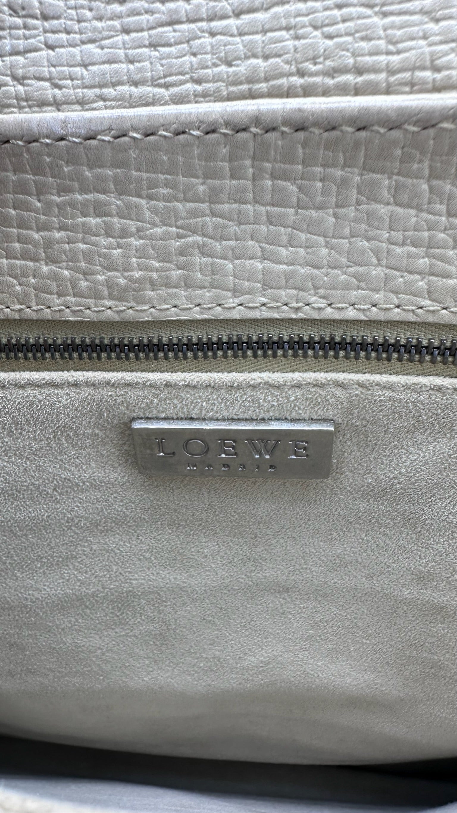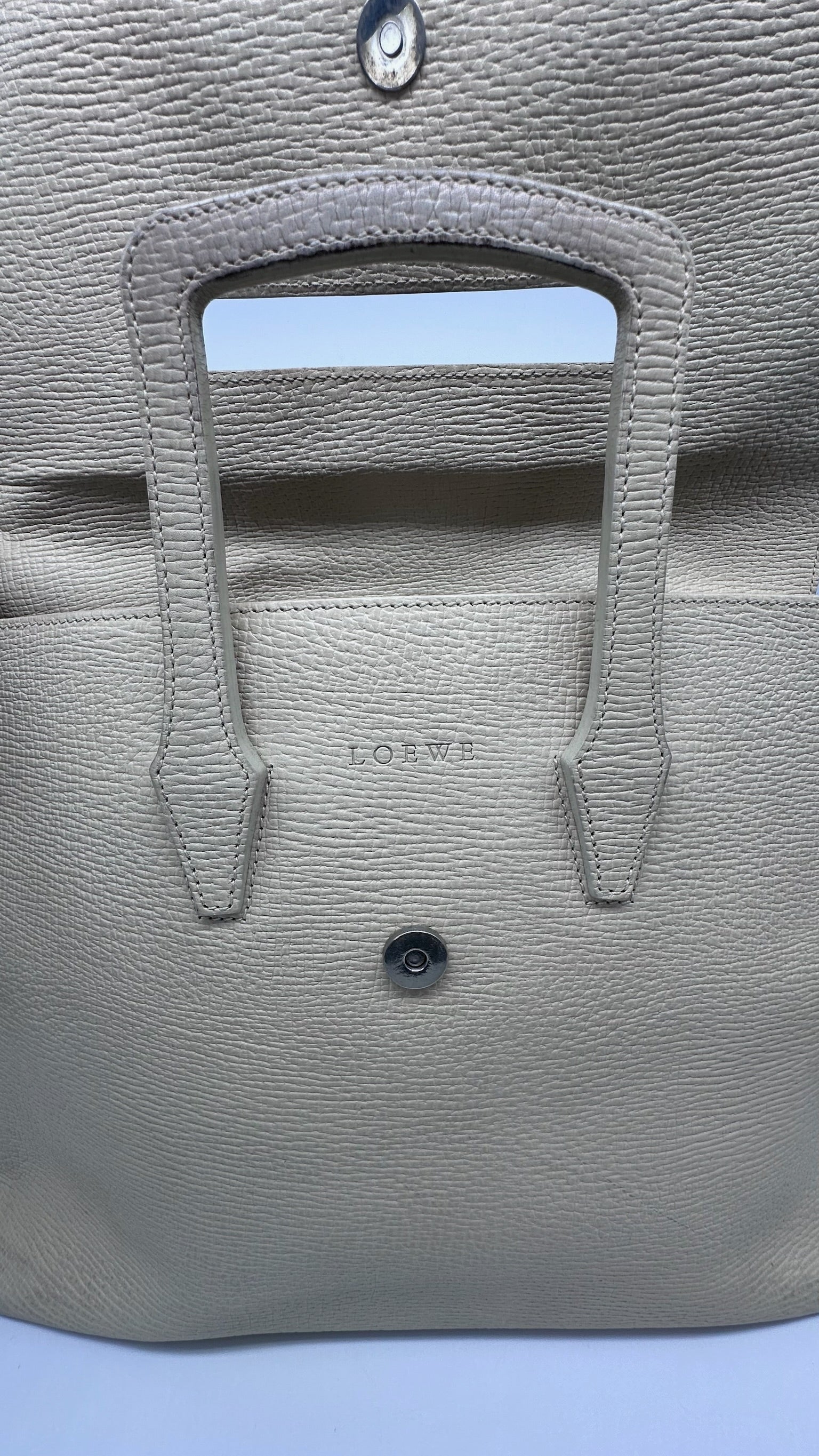 SUPER RARE Authentic Loewe Textured Leather Tote in a neutral cream/off-white shade with rich pebble-grain calfskin.