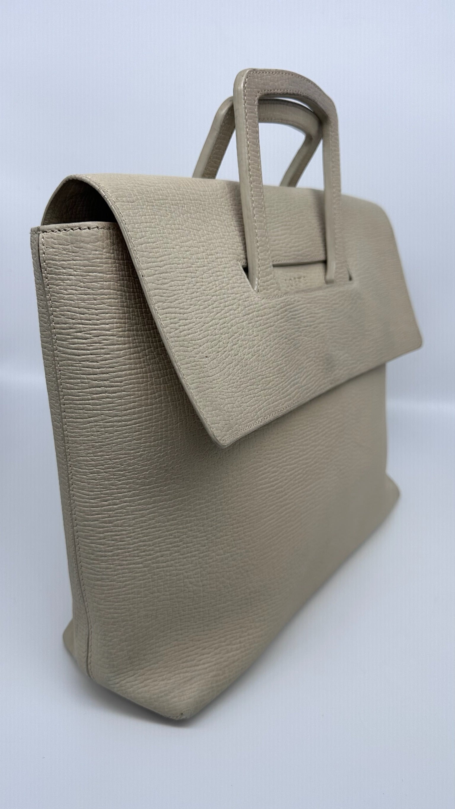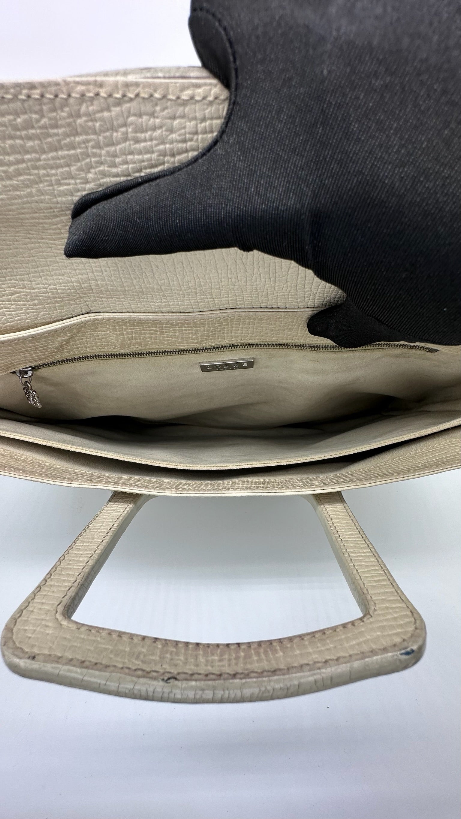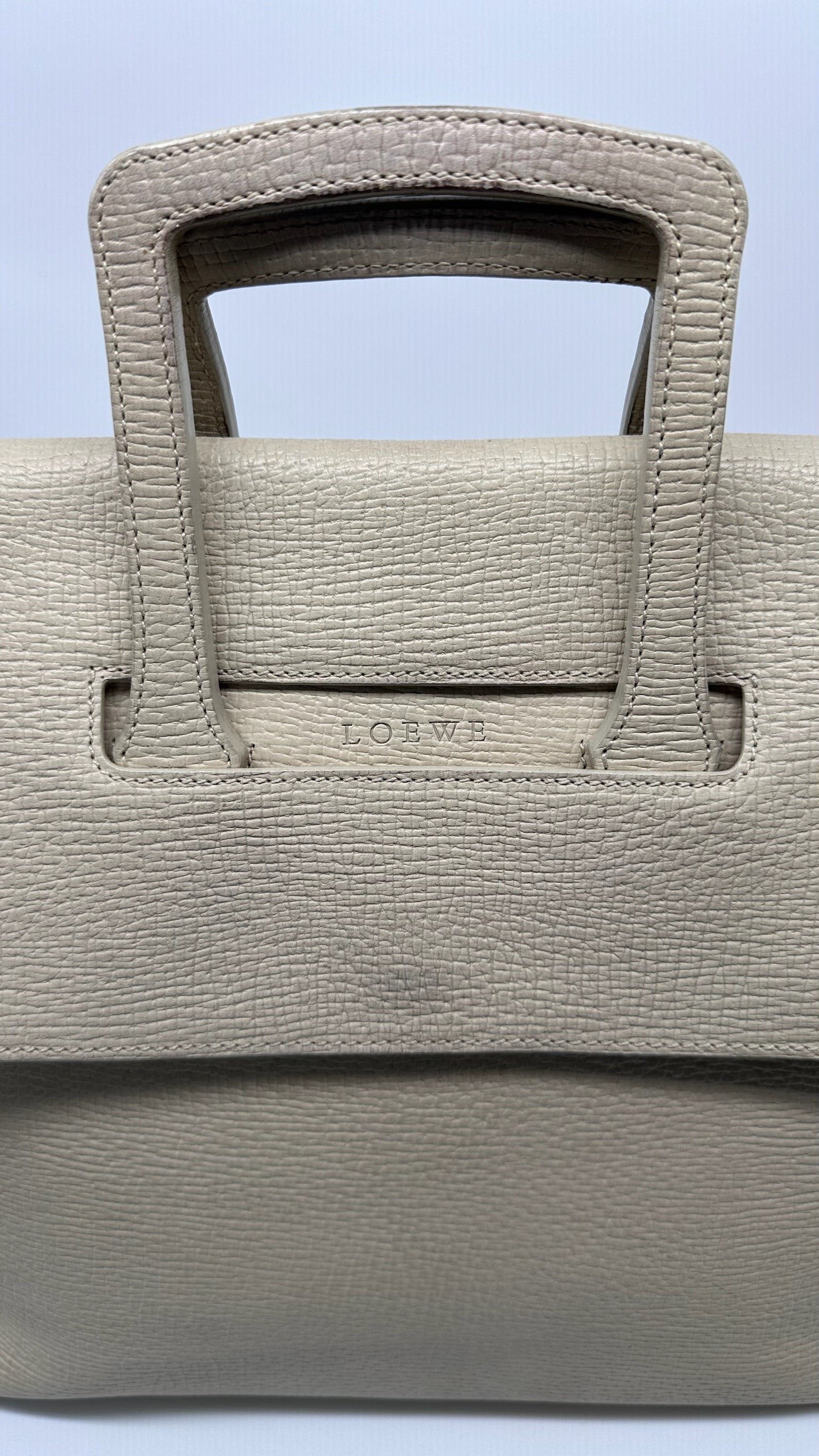 SUPER RARE Authentic Loewe Textured Leather Tote in a neutral cream/off-white shade with rich pebble-grain calfskin.