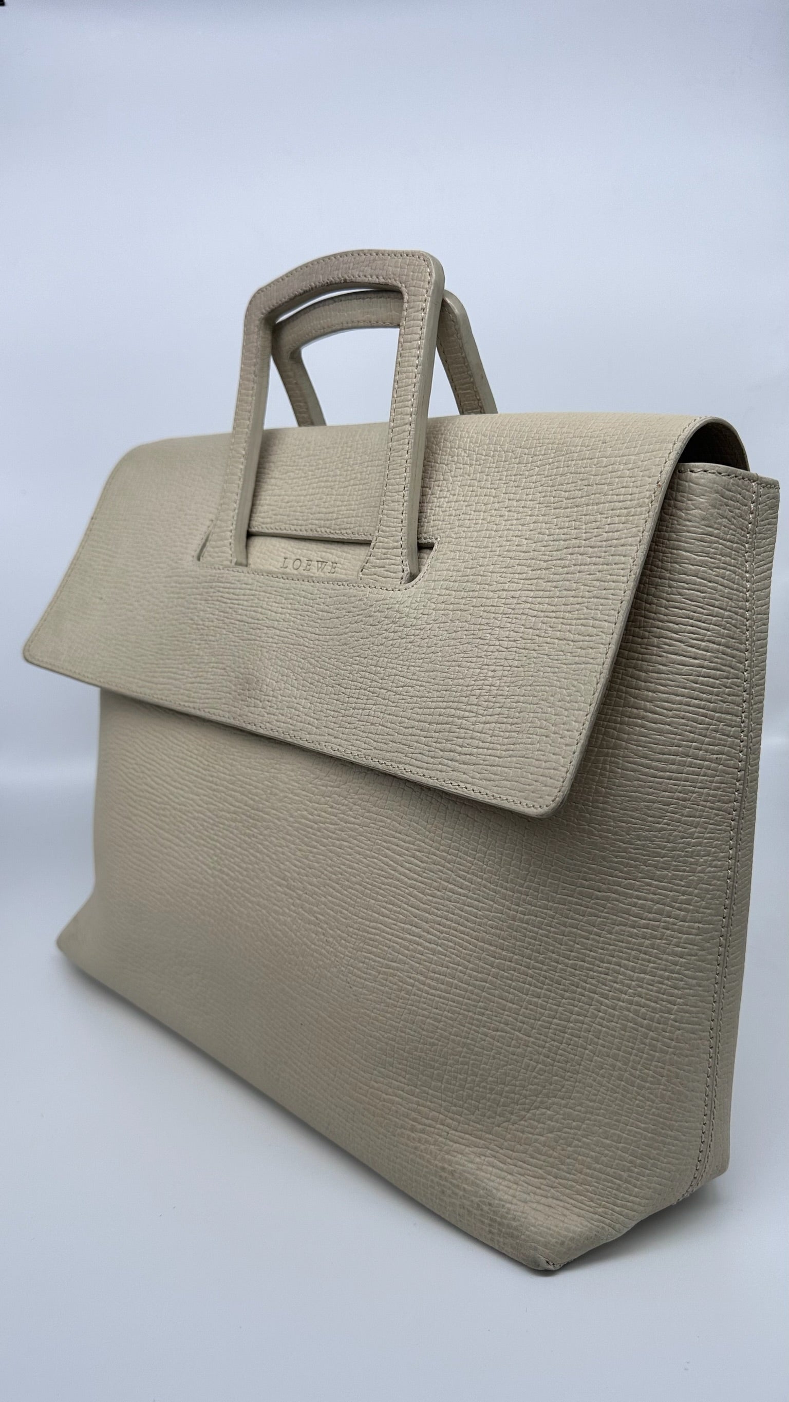Features structured top handles, zip closure, and subtle Loewe embossed logo under the flap.