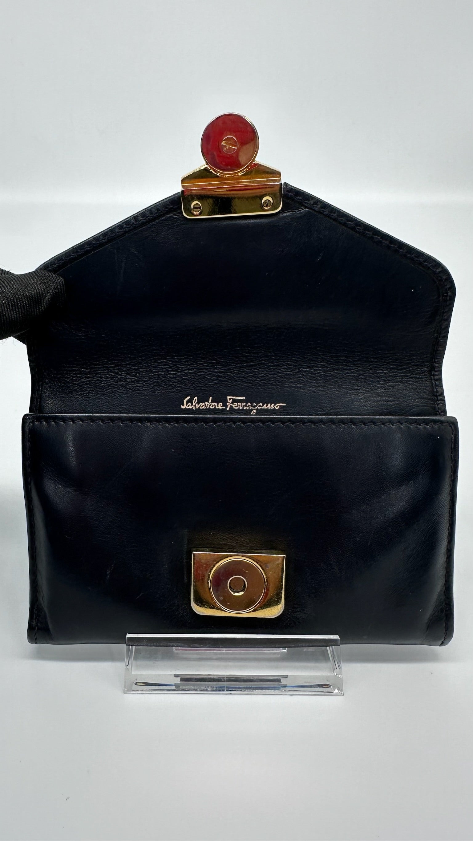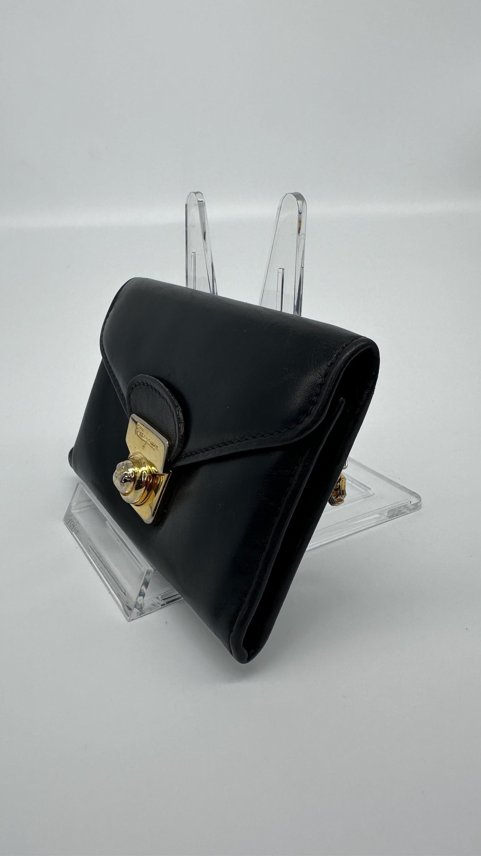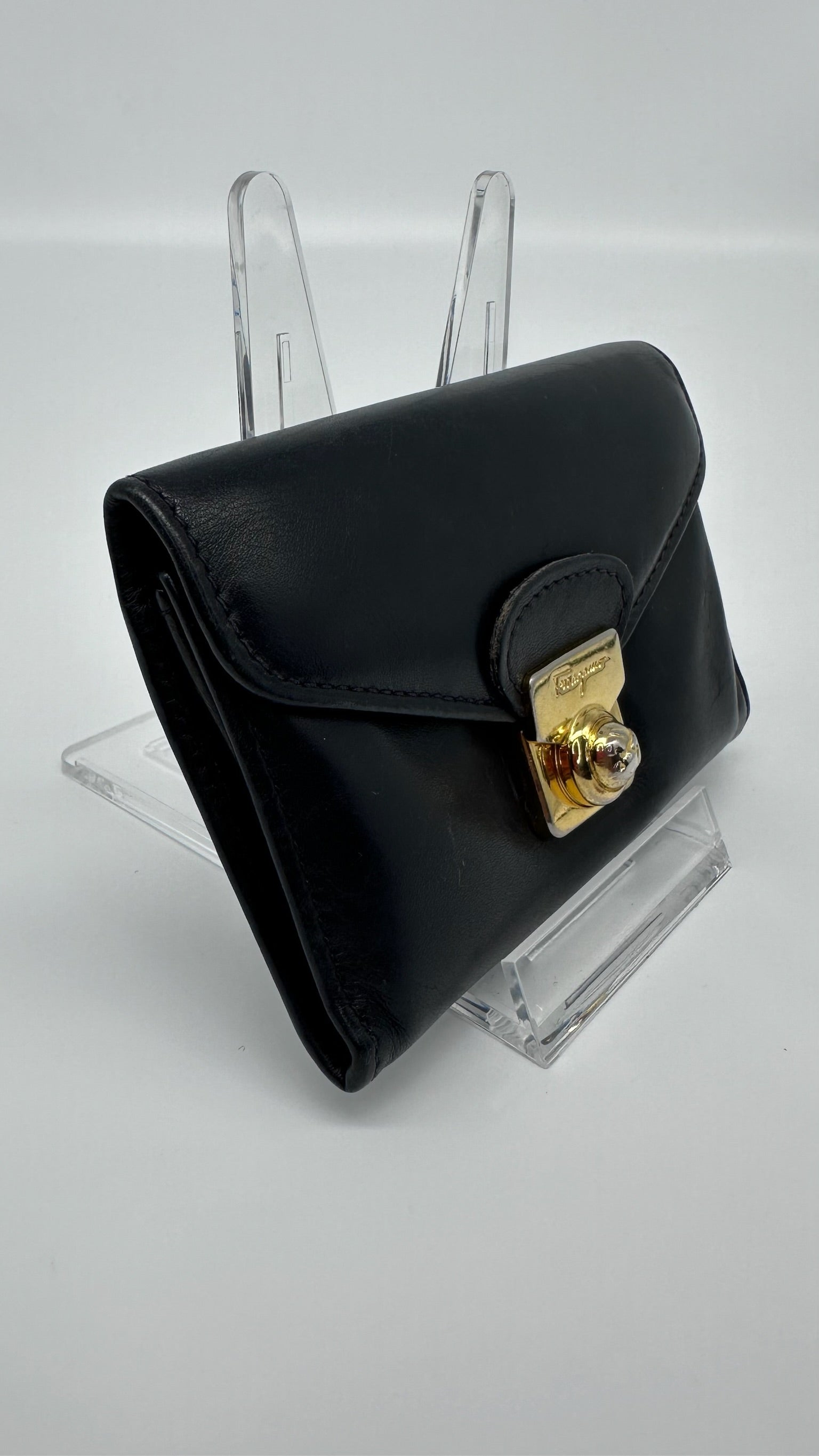 Salvatore Ferragamo Vintage Black Leather Wallet with Gold Snap
