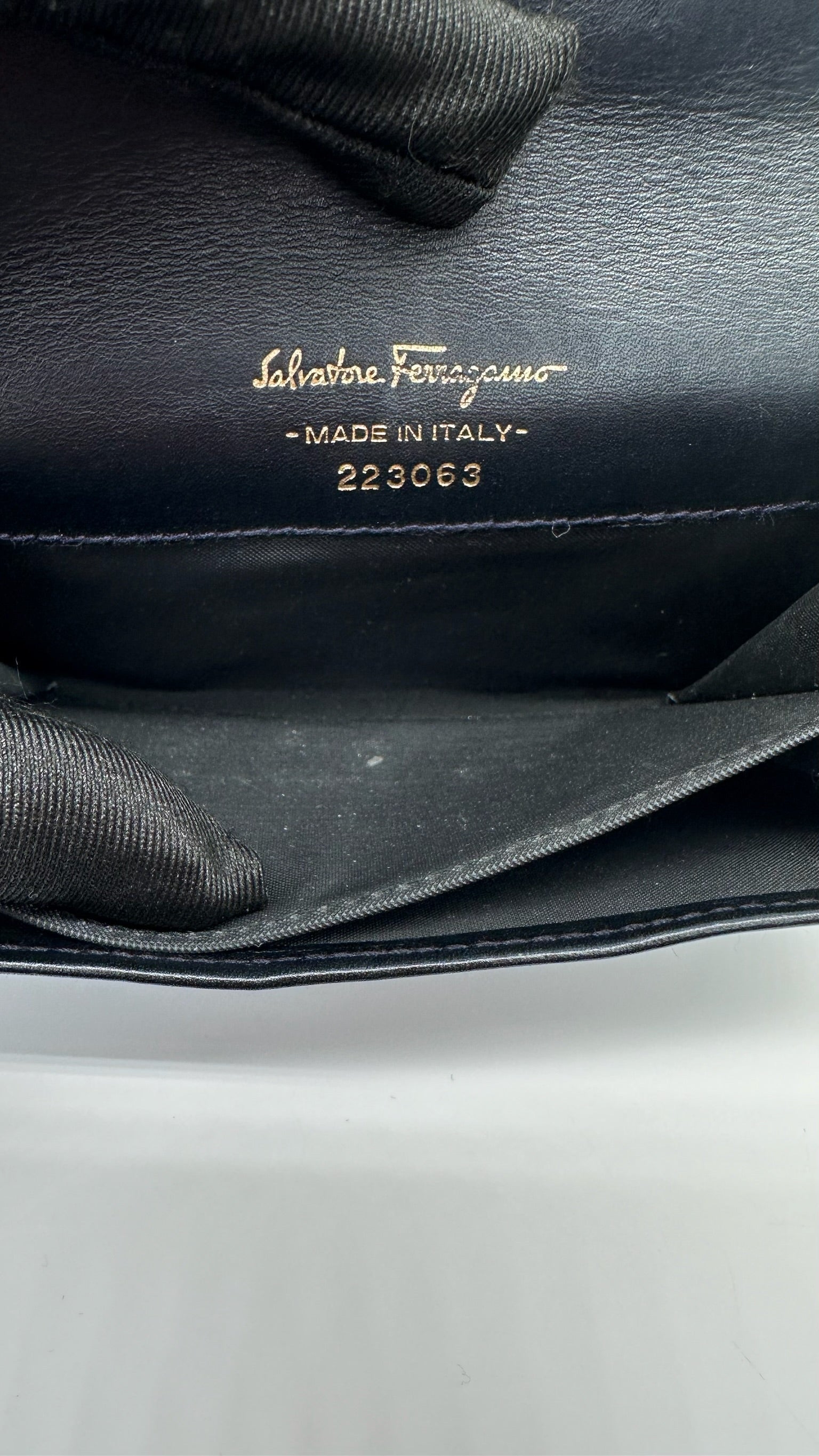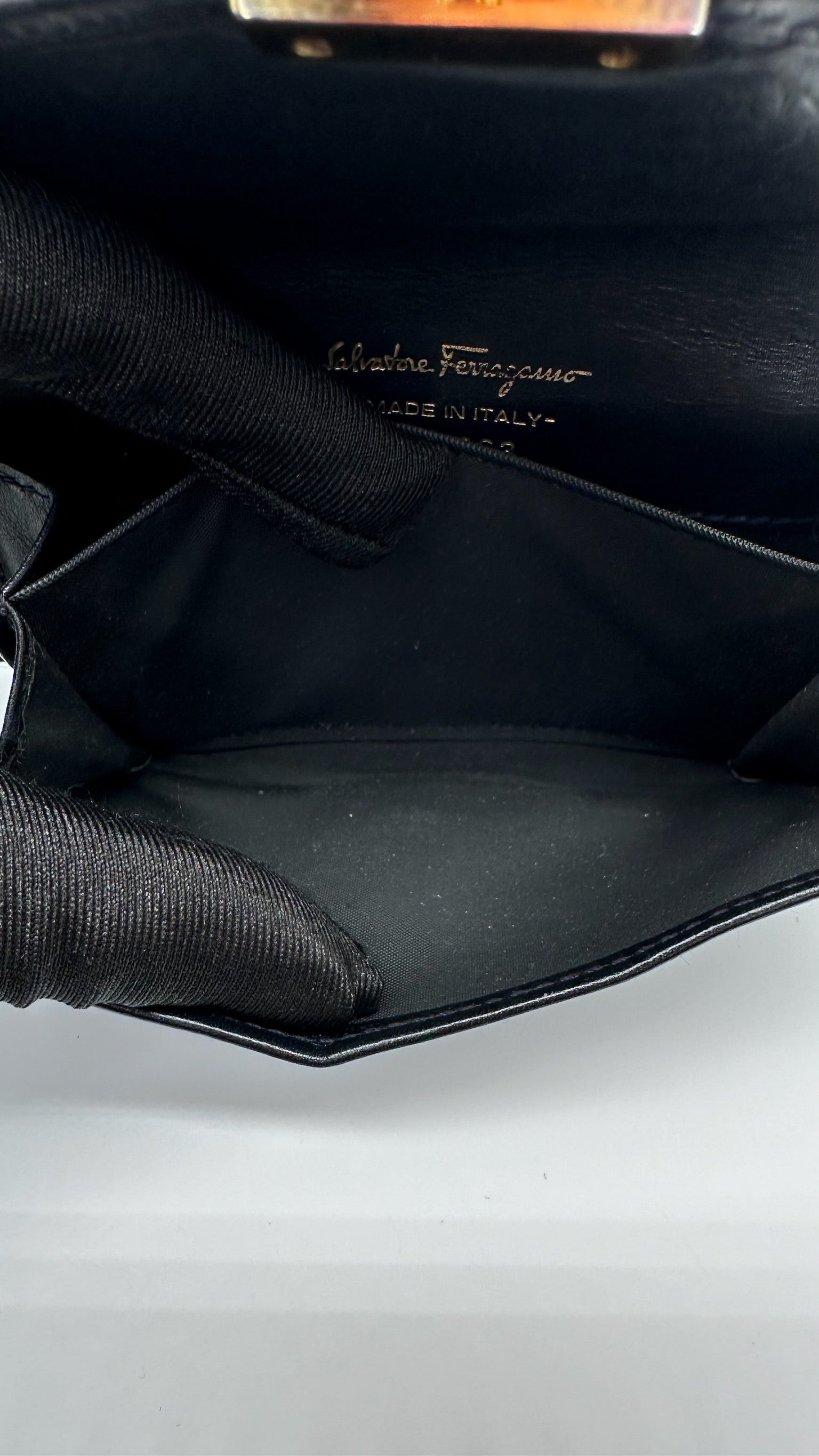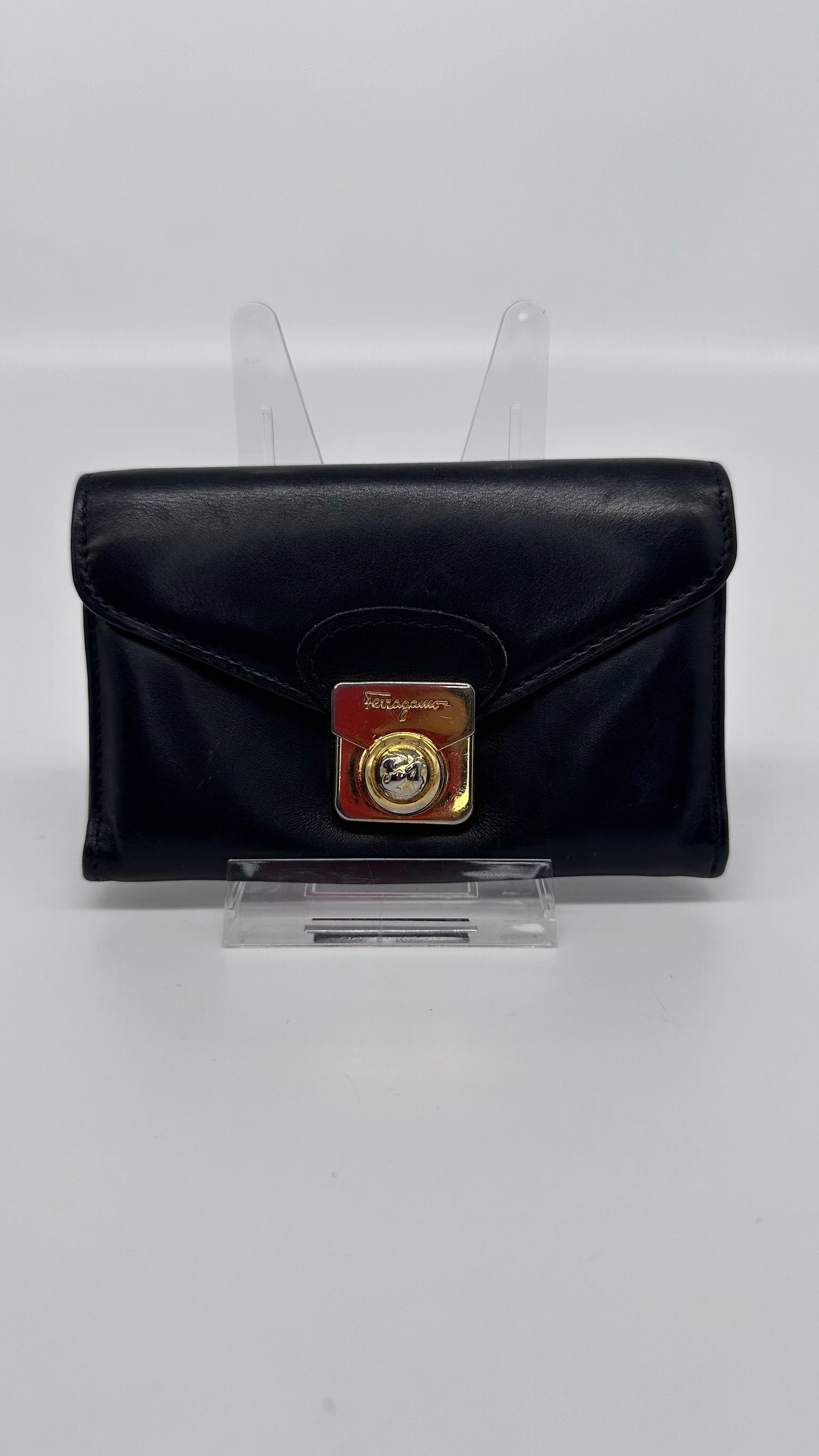 Salvatore Ferragamo Vintage Black Leather Wallet with Gold Snap